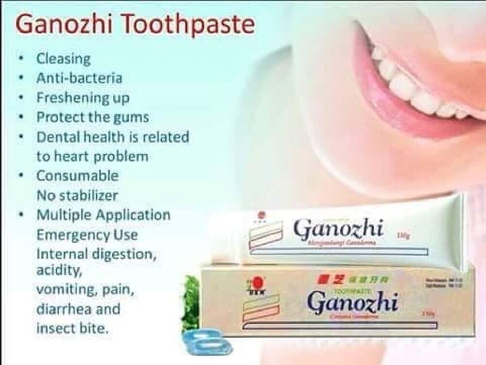 DXN Ganozhi Ganoderma Toothpaste (called Ganozhi) contains Ganoderma extract, food gel (sodium alginate derived from seaweed) and menthol (for flavour). It does NOT contain aspartame, saccharin or colouring. Ganozhi Toothpaste is 100% fluoride free, no saccharin and no artificial colouring. It contains Ganoderma, food gel and menthol. It leaves a pleasant feeling in your mouth after using it.