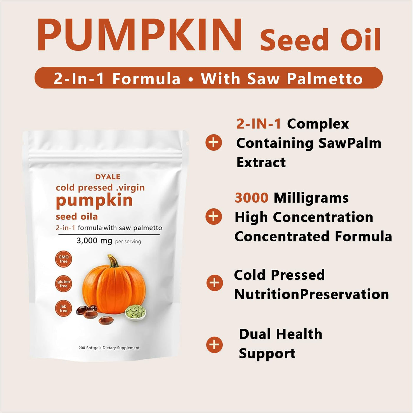 DYALE Pumpkin Seed Oil with Saw Palmetto,200 Softgels | Cold Pressed, Pure Virgin Oil, Essential Fatty Acids & Phytosterols | Supports Hair, Urinary, Bladder & Prostate Health | Non-GMO (1pc)