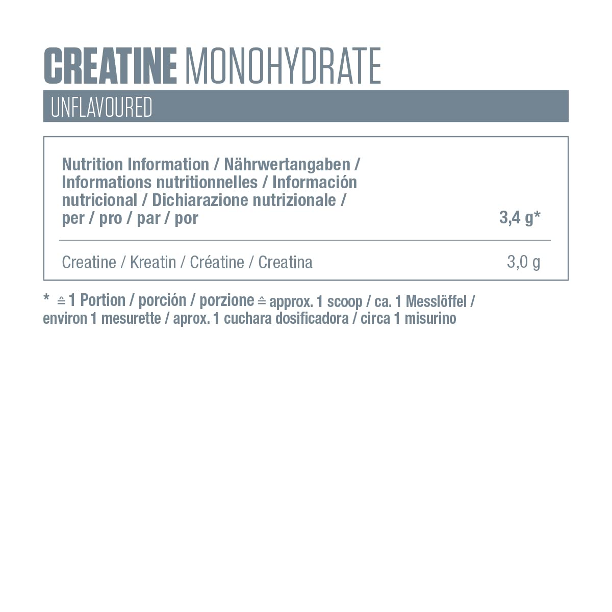 - 100 percent high quality Creapure creatine monohydrate made in Germany