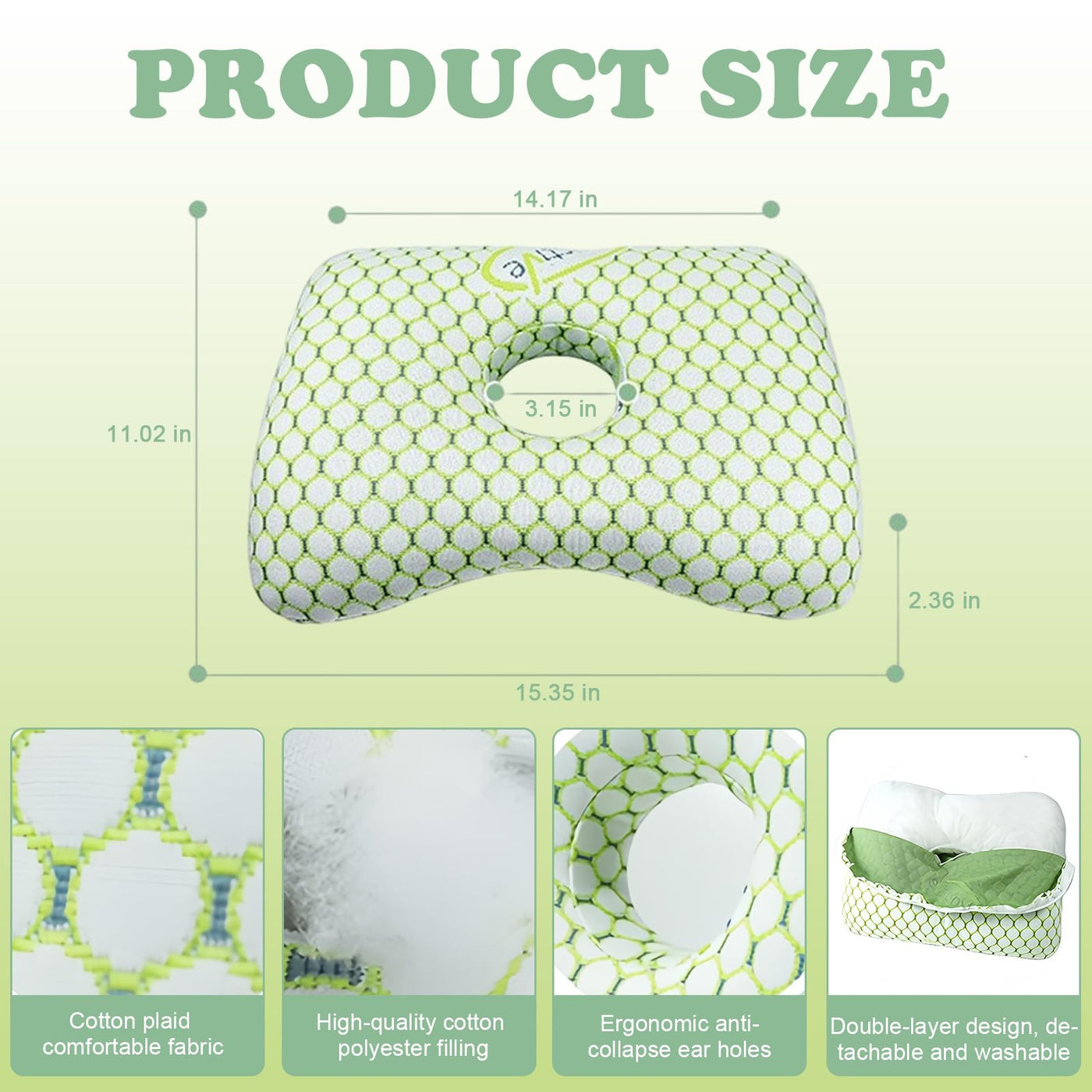 Ear Piercing Pillow for Side Sleepers with an Ear Hole for CNH and Ear Pain Ear Inflammation Pressure Sores, Washable and Adjustable Ear Guard Pillow(Green)