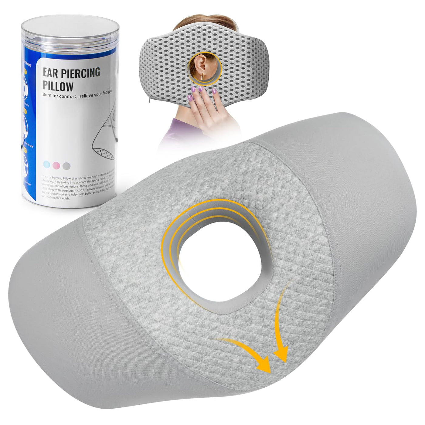 - WARM TIPThis ear piercing pillow is small in size, developed for side sleepers with ear discomfort, and when used alone, it may very well not meet the need for neck support. So we recommend that you pad the ear piercing pillow on top of your usual pillow and stack the two pillows for a better experience!
