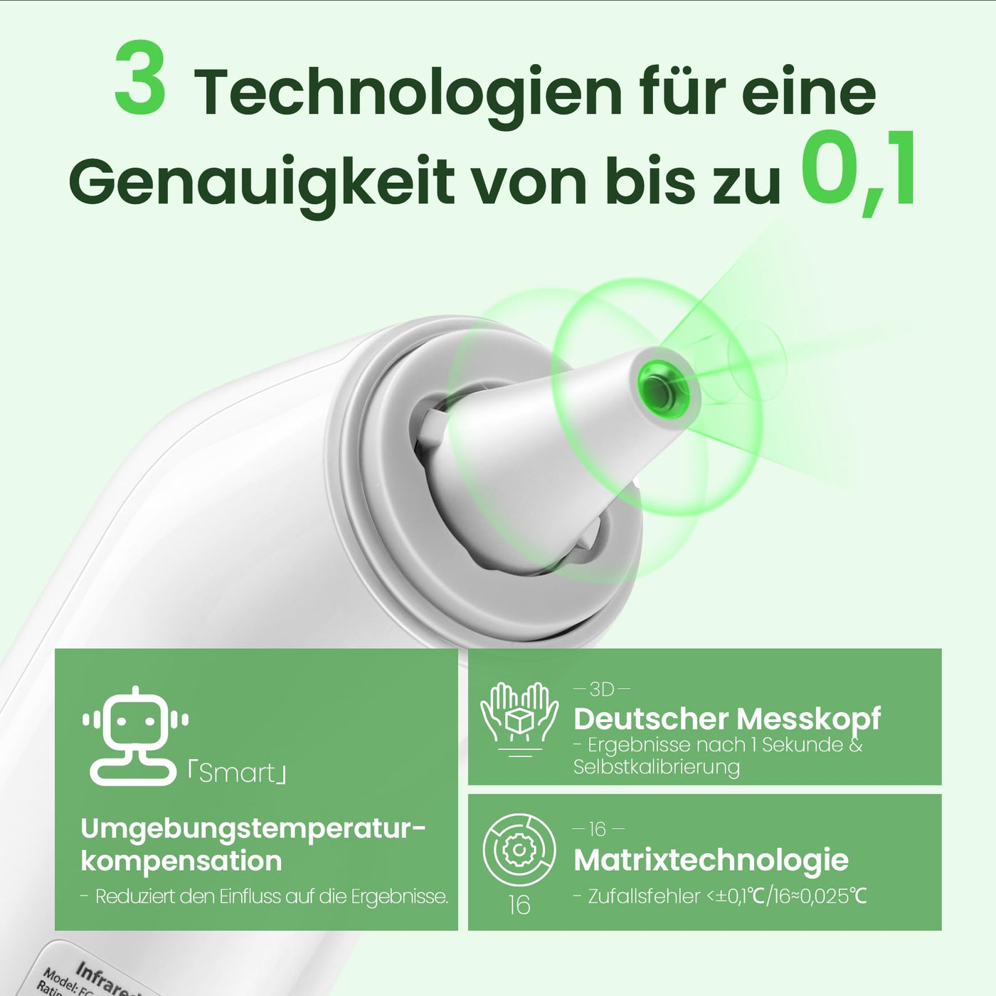 - FAST & ACCURATE: Our ear thermometer is equipped with the latest technology that enables intelligent age measurement that provides accurate results within 1 second based on three different age groups. The thermometer is suitable for all ages (including infants, newborns, adults and the elderly).