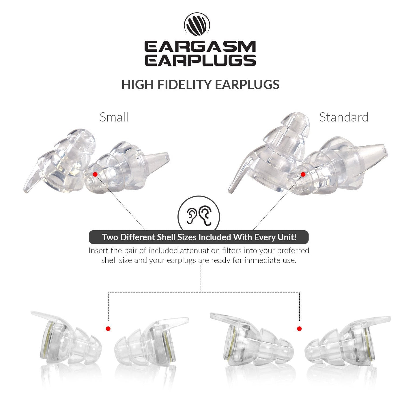 - PERFECT FIT GUARANTEE - Two pairs of different sized earplug shells made from hypoallergenic silicone are included with every unit. Fits most normal to large ear sizes. Individuals with smaller ear canals may want to consider our Smaller Ears Earplugs model. Contact Eargasm support with any fit issues and well be sure to make things right!