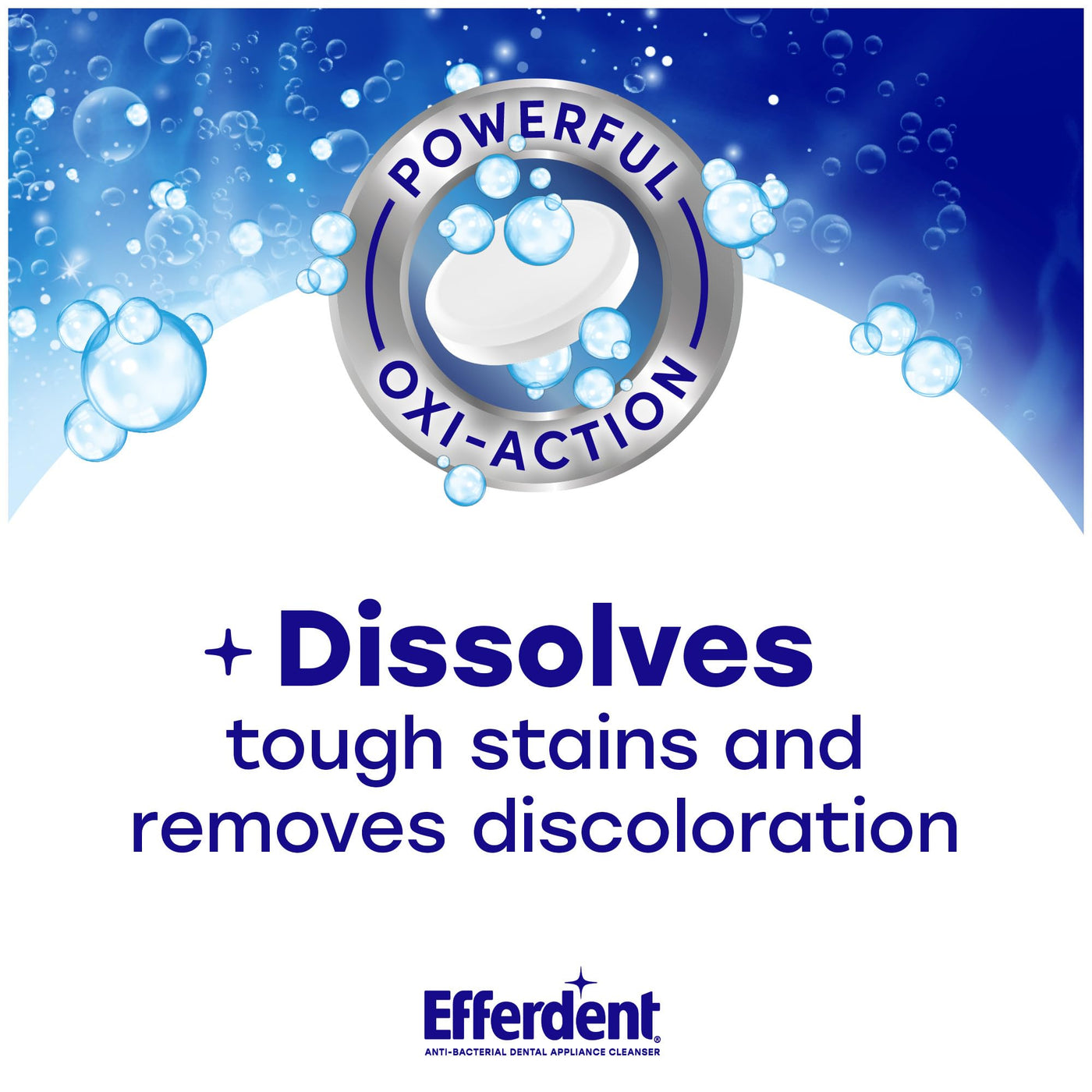 Efferdent Retainer Clean & Bright retainer cleaner tablets kill 99.99% of odor-causing bacteria. Gentle and non-abrasive, these antibacterial cleaning tablets are safe for daily use on retainers, aligners, mouth guards, night guards, dentures, and other dental appliances. These retainer cleaner tablets work in just 3 minutes to remove tough stains and discoloration. To use, drop one tablet into a glass of warm water or denture bath, submerge the dental appliance and keep for 3 minutes, then rinse off and it's ready to go. Efferdent is the first brand accepted by the American Dental Association to make denture cleaning tablets and retainer cleaning tablets. This great value package includes 120 individually wrapped tablets (4 month supply). Efferdent available in different variants Complete Clean, Minty Fresh & Clean, Deep Clean and Retainer Clean & Bright. Your purchase may be eligible for FSA/HSA; check your health plan for details.