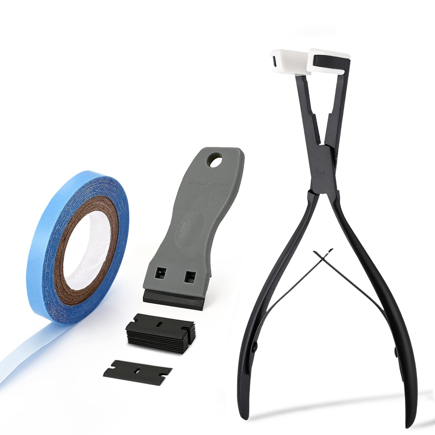 - VALUE PACK: Includes 1 tape in hair extension Pliers+1pc 0.8cm Width 3 Yards Length lace front tape rolls + 1pc plastic scraper tool with 10pcs extra blades