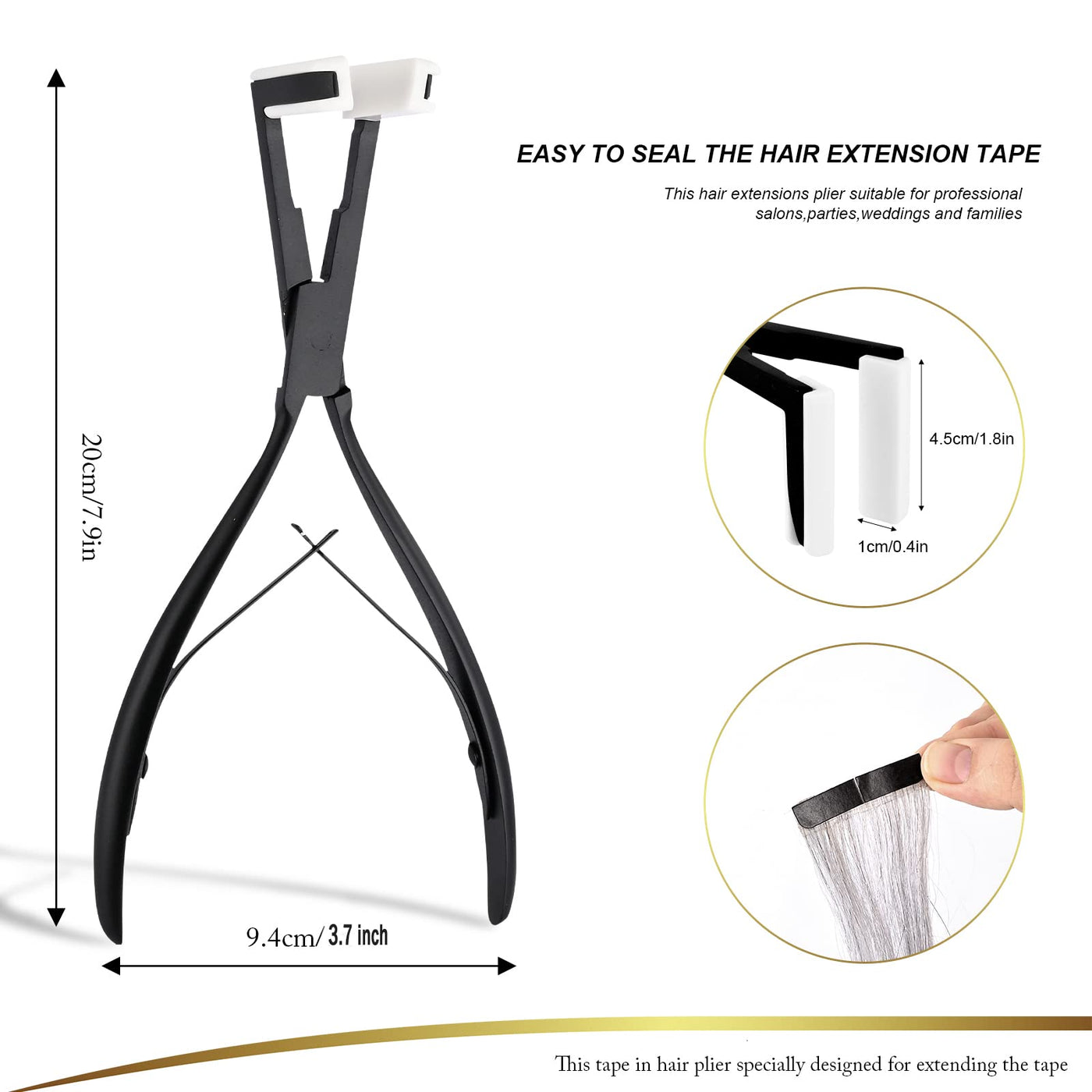 - Hair Extensions Styling Pliers Function:The tape in pliers are suitable for most professional hair salon & household needs. Use the tape pliers to squeeze the tapes together, applying even pressure across the tapes on both sides, for the hair extension secure hold. You can make the hair extensions you want and become the most confident girl.