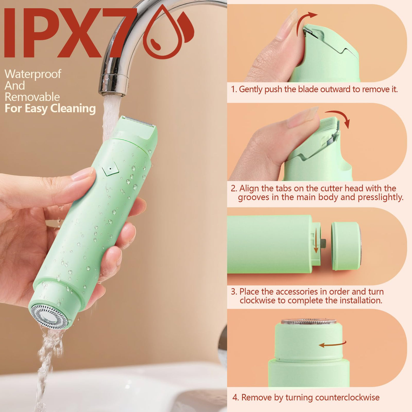 - IPX7 Waterproof Easy-to-Cleaning: Experience waterproof electric shaver for women both waterproof for Wet/Dry Use, Removable blades and washable trimmer heads, come with a cleaning brush make cleaning easier!