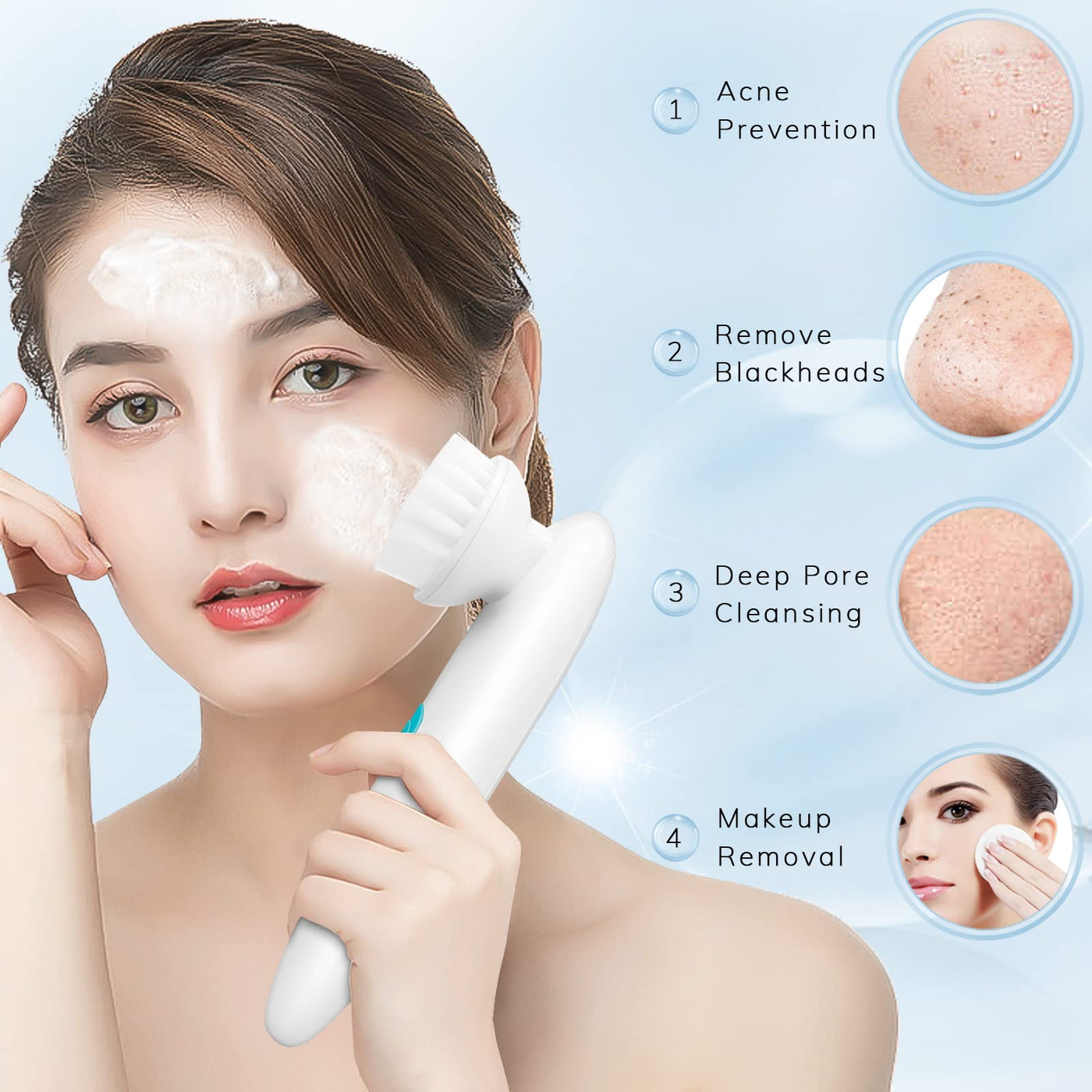 - ALL IN ONE CLEANSING SYSTEMThis Facail Cleansing Brush Set contains soft bristle brush head and silicone brush head, which is suitable for all skin types including sensitive skin, meet a variety of face cleansing and skincare needs including fading acne marks, cleansing blackheads, deep pore cleansing, makeup cleaning