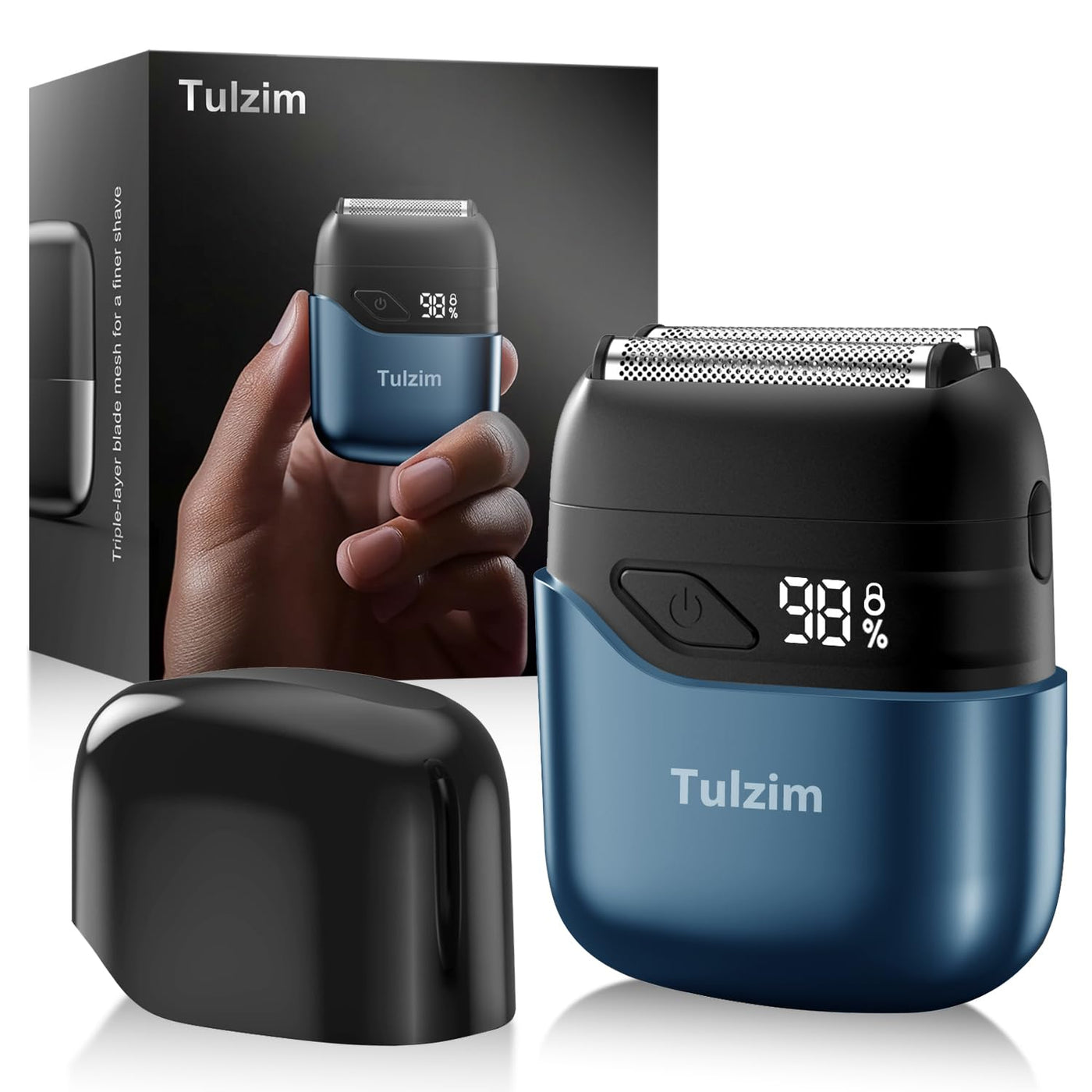 Electric Foil Shaver for Men: Portable Electric Razor for Beard/Face - 3 Floating Blade LED Display USB-C Fast Rechargeable - IPX7 Waterproof for Travel & Home - Blue