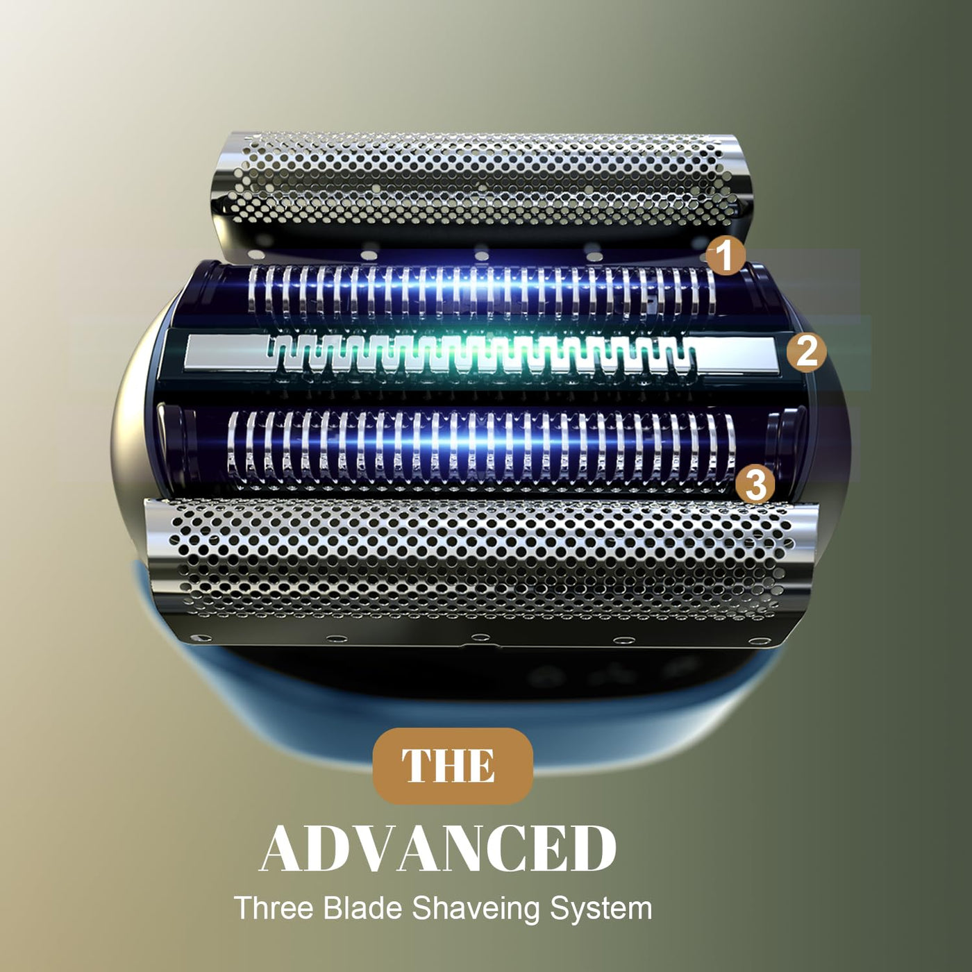 - Three-Head Design: This foil shavers for men uses an innovative three-head system. The flexible and floating heads fit the facial curve perfectly, easily cope with various facial contours, ensure that every shave is accurate and without dead angles. hypoallergenic foils for sensitive skin will give you a smooth and comfortable shaving experience.