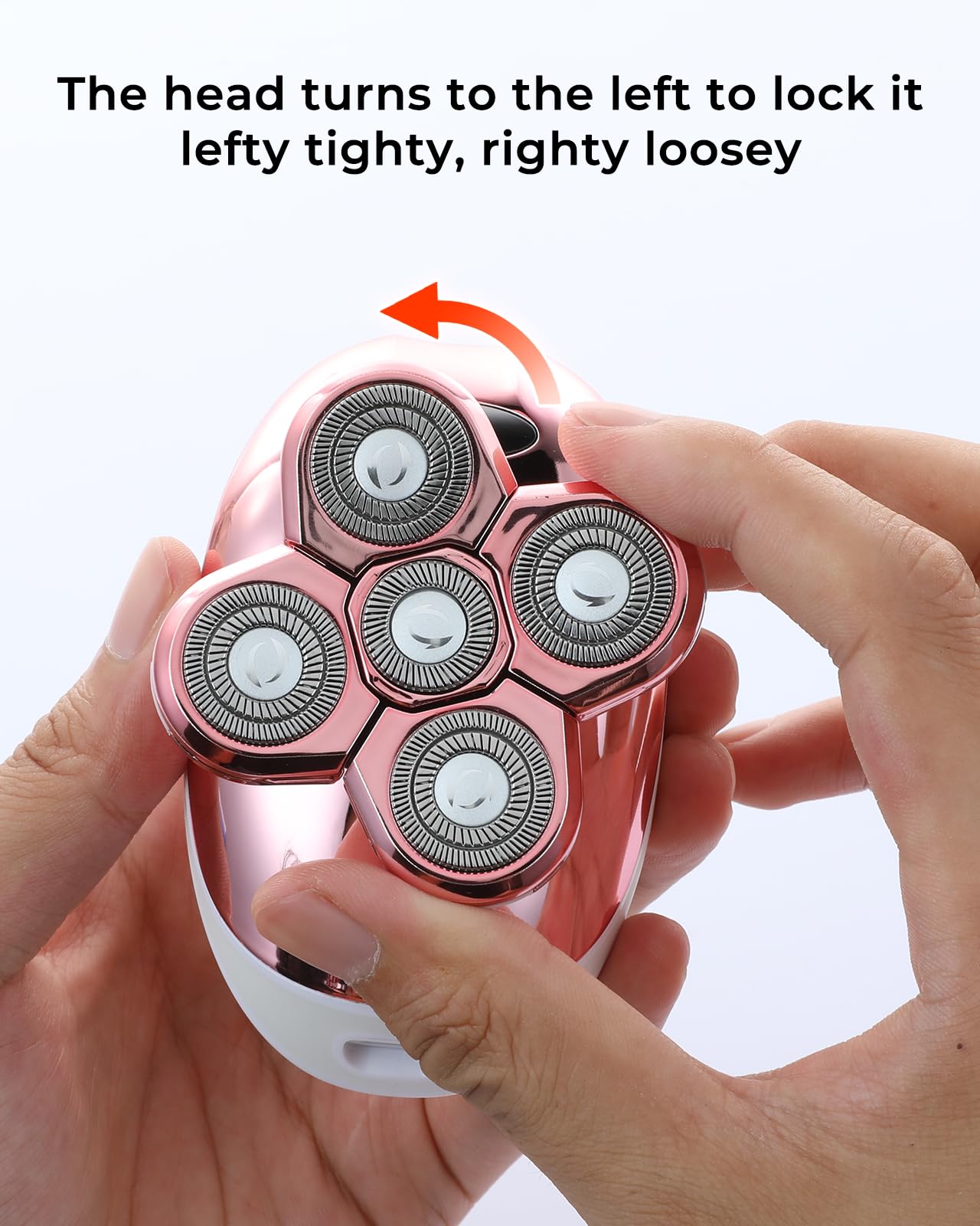 - 5D Floating Head: The razor head can float flexibly (The head turns to the left to lock it), fit the body curve, reduce skin friction, and shave more smoothly. It is very suitable for areas such as underarms, legs, arms, bikini lines, etc. This electric shaver for women is lightweight (154g), travel-friendly, ergonomically designed, and easy to operate.