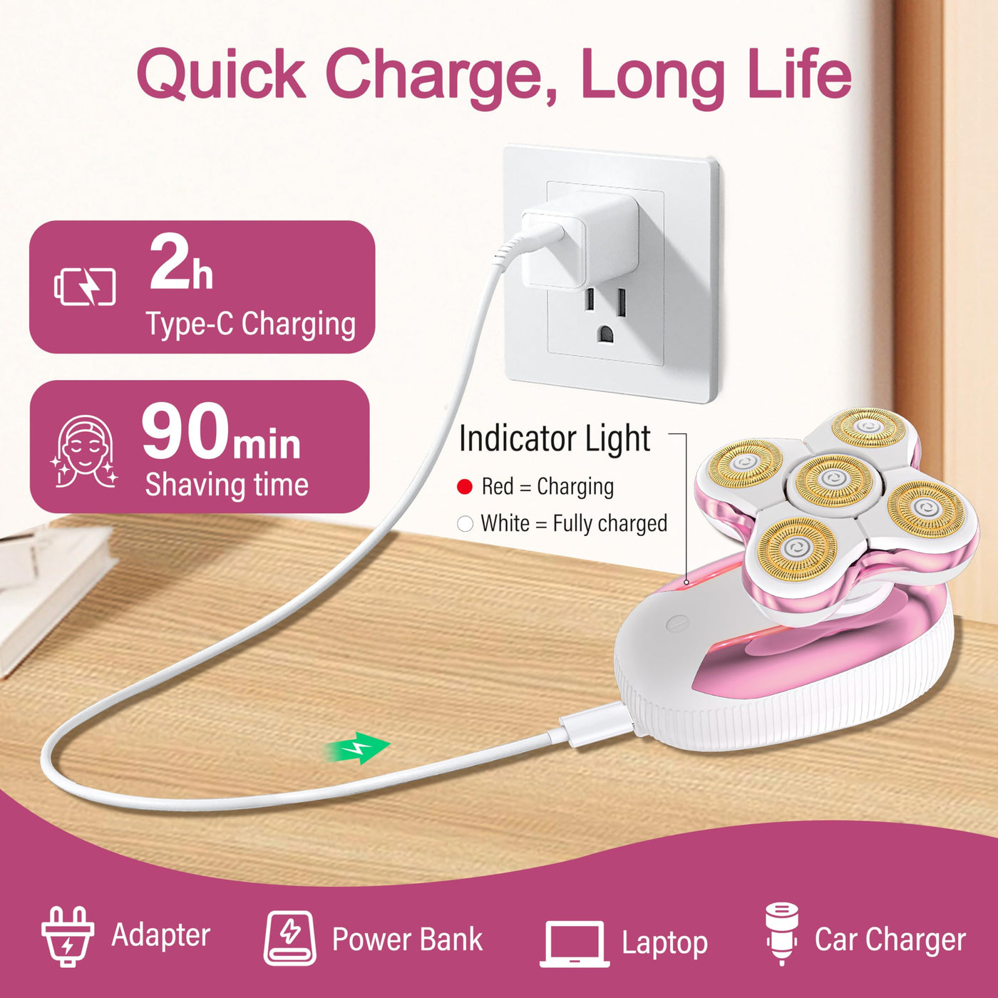 - 5D Magnetic Electric Shaver for Women - Features detachable 5D magnetic blades for effortless hair removal on legs & bikini area. Waterproof cordless design with 2-speed settings (gentle/strong) and 90min runtime. Painless floating blades prevent skin irritation.