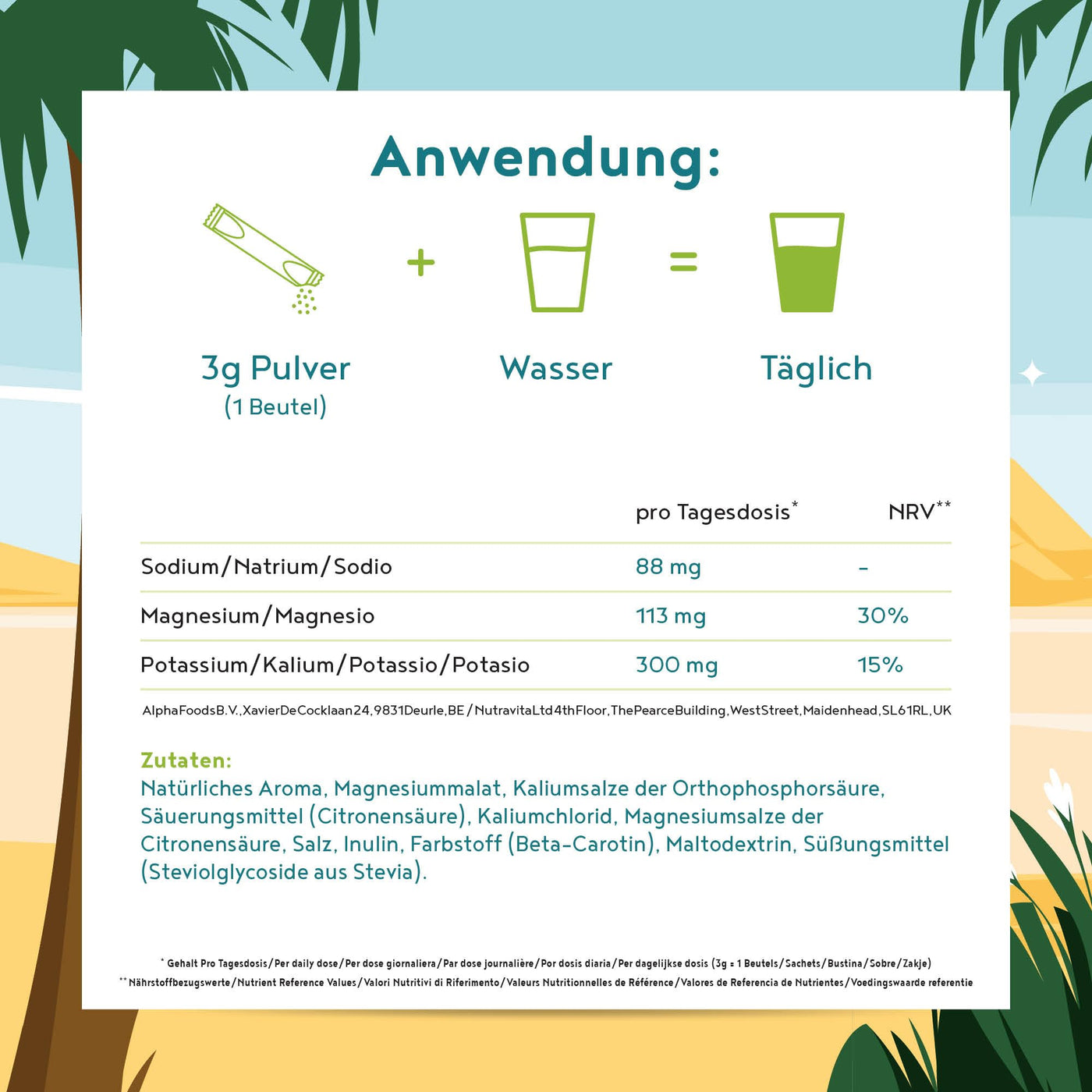 - ELECTROLYTES ARE VITAL ELEMENTS: With every drop of sweat our body loses valuable minerals such as sodium, magnesium and potassium. If the body loses a large amount of minerals over a long period of time, an undersupply occurs, which can be reflected in deficiency symptoms or reduced performance. Especially in summer and among athletes, there is an increased need for electrolytes.