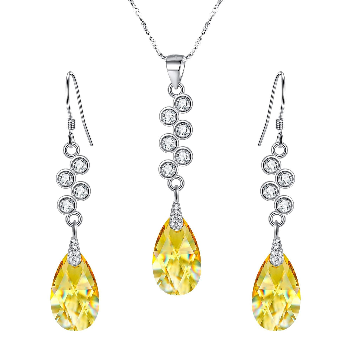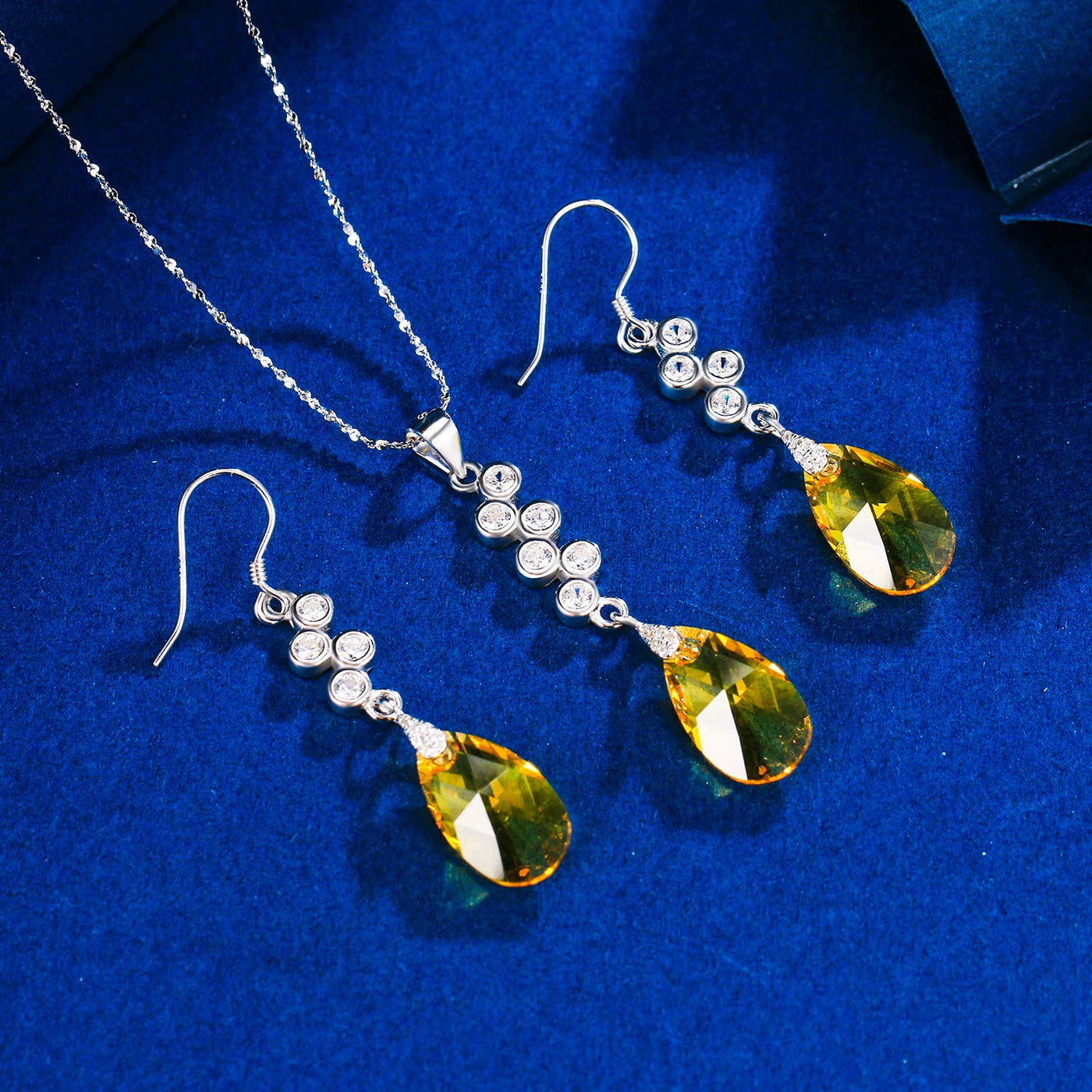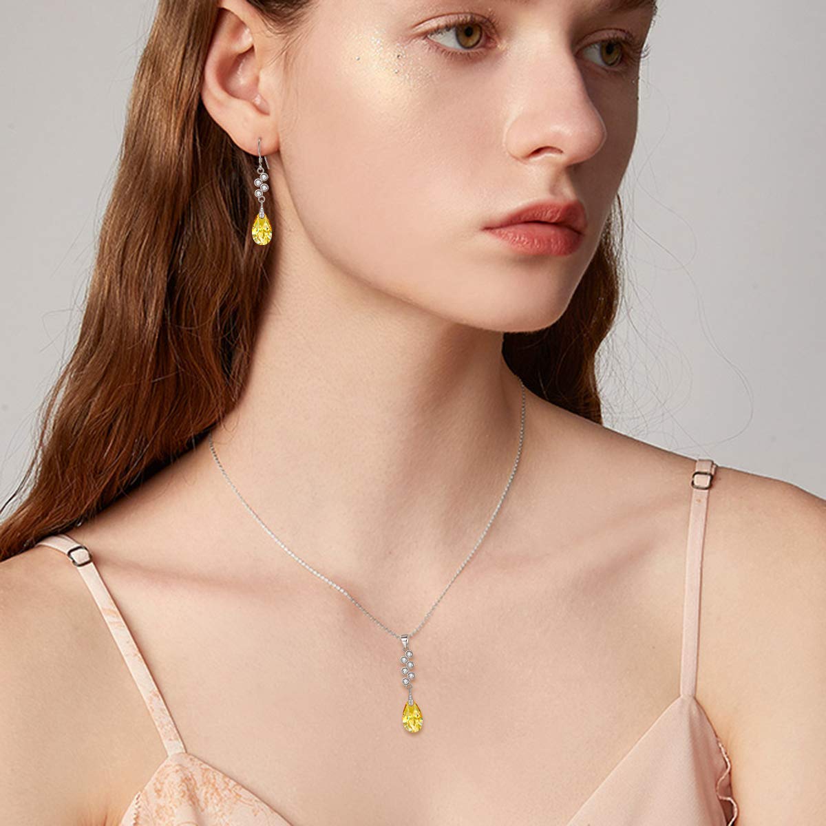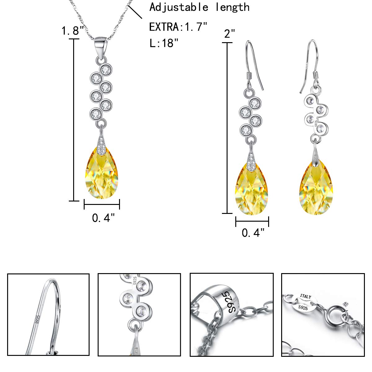 EleQueen 925 Sterling Silver CZ Teardrop Pendant Necklace Hook Dangle Earrings Set Made with Crystals Yellow Color