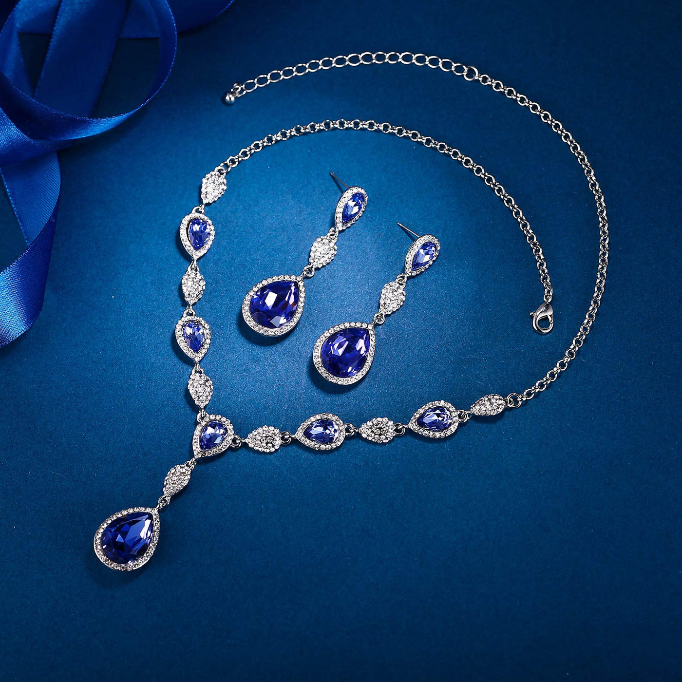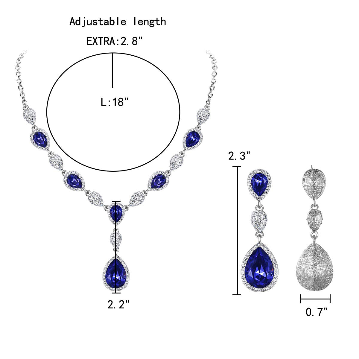 EleQueen Women's Cubic Zirconia Teardrop Y-Necklaces Dangle Earrings Sets for Bride Bridesmaid