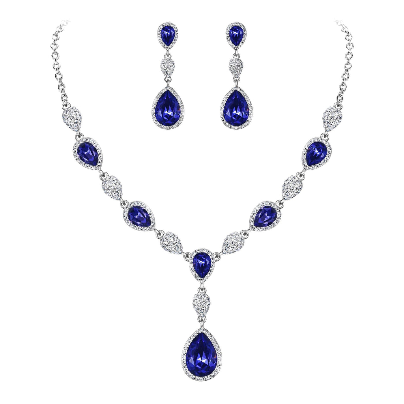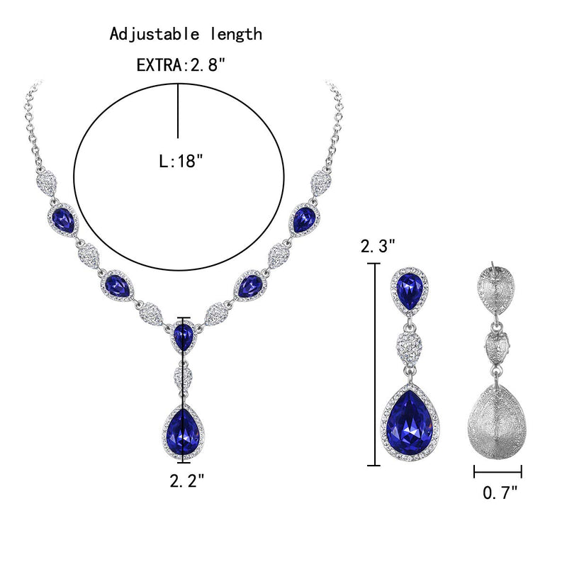 Will you marry me? Yes, I want to be with you forever. EleQueen Brand Story Referred to "Elegant Queen", denotes to treat all of the world's women like an elegant queen, meets their fantasies and satisfactions and concentrate on the inception of stylish design, superb manufacturing process and high quality brand jewelry. Be the focus of all attentions! Perfect outfit for : Bride Bridesmaids Wedding attender Mother Wife Girlfriend Important occasions : Wedding Party Anniversary Birthday Wearing gorgeous jewelry set to get more luck! Lucky Color : Dec --- White Sep --- Sapphire Color Jul --- Ruby Color May --- Emerald Color Feb --- Amethyst Color Customer Shopping Experience Sapphire Color Quality was excellent. Sparkly and perfect for an evening event, wedding, or cocktail party. I was pleasantly surprised. Ruby Color I got this set for a wedding, Wow how pretty. I love everything. The cost and it really looks nice not gaudy. I love the length. Sits just right. Amethyst Color this item was brought for my sister she love it. This is a wedding present. Yes i would recommend it to friend and family. Emerald Color They are SO beautiful!! I am over the moon excited to wear these!! I even told my bridesmaids they should check them out!! Read more Crystal Wedding Jewelry sets Statement Bridal Jewelry Sets Wedding Jewelry Sets Teardrop Dangle Earrings Prong CZ Bridal Tennis Bracelets Sparking Cubic Zirconia Bridal Tennis Bracelets Material Alloy Cubic Zirconia Alloy Cubic Zirconia Alloy Cubic Zirconia Alloy Cubic Zirconia Alloy Cubic Zirconia Alloy Cubic Zirconia Gift Box ✓ ✓ ✓ ✓ ✓ ✓