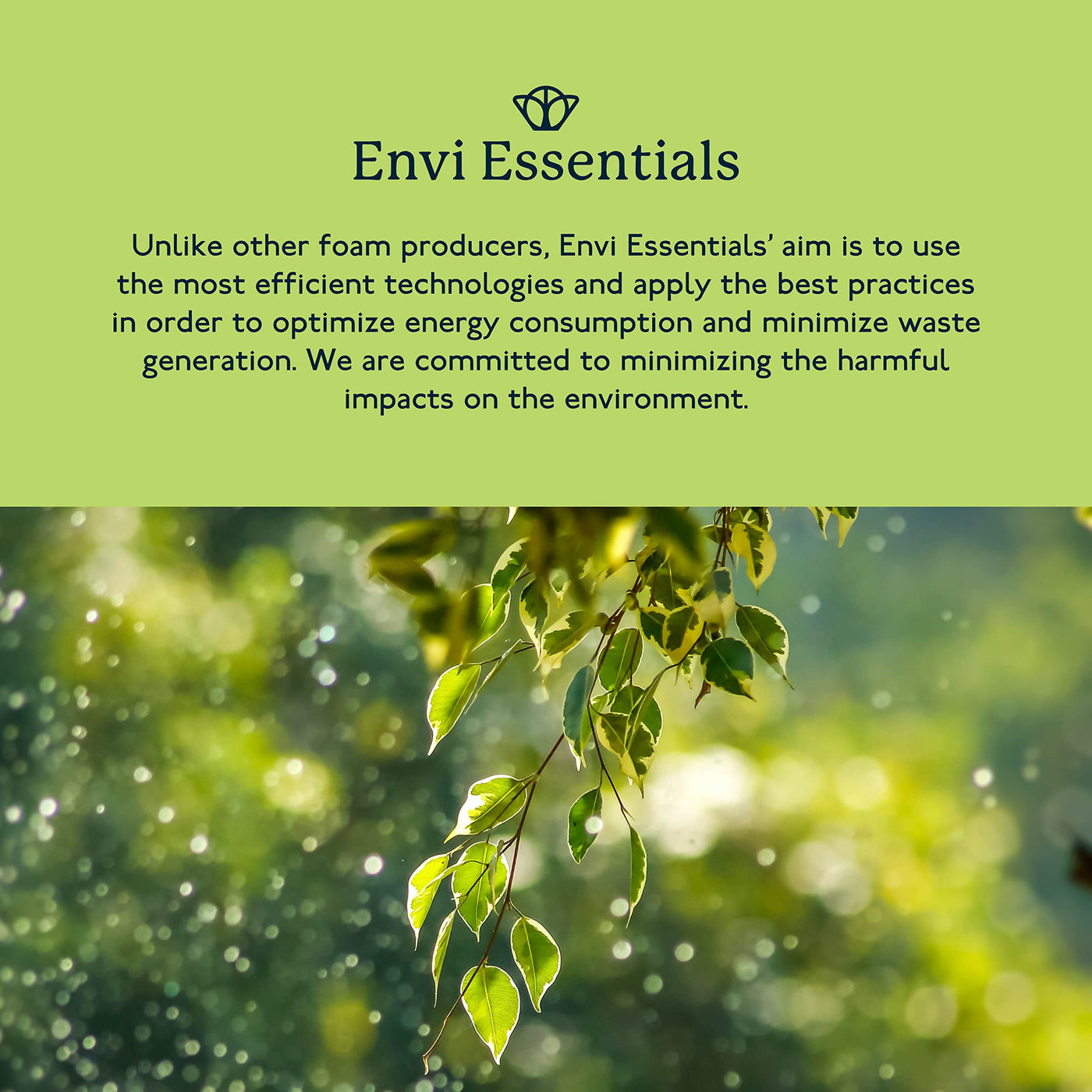 - MINDFUL OF THE ENVIRONMENT: Envi Essentials stands apart with its commitment to sustainability. Unlike other foam fabricators, we utilize cutting-edge, energy-efficient technologies and best practices to minimize waste and reduce our environmental footprint. From production to packaging, our mindful approach ensures you're making a better choice for your body and the planet.