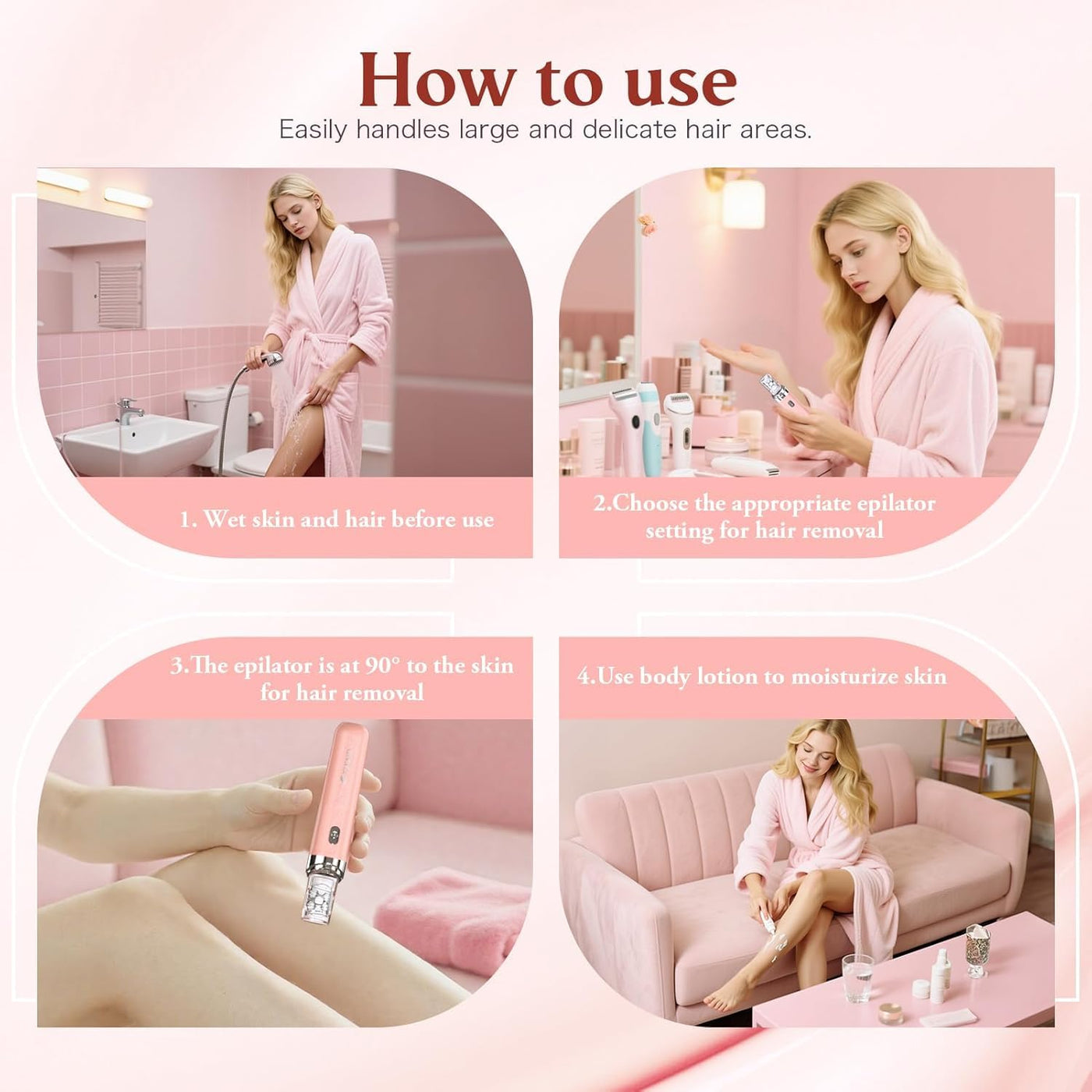 👙Facial Hair Removal for Women Feature1️⃣Deep facial cleansing hair removal,Charging for 120 minutes, can be used continuously for 60 minutes, ultra-long battery life2️⃣2-in-1 Hair Removal Device3️⃣LED Light Precise facial epilation 4️⃣Waterproof & Easy to Clean epilator5️⃣One Button Operation epilator for women6️⃣Used on all parts of the body7️⃣Painless hair removal, Replaceable Removal Head8️⃣One cycle of hair removal, smooth skin for 4 to 6 weeks9️⃣Also suitable for men’s hair removal device✨How to use this facial hair removal for women to remove hair painlessly?1. Before use the epilator, please wet the skin that needs hair removal with warm water and apply warm towel for 15 minutes to open the pores.2. After the pores are opened, operate the area where hair removal is required. Hold the epilator at 90° to the skin, so that the tweezers of the epilator are close to the skin and slide slowly.3. After the hair removal device is completed, you can use LED light to check whether the hair removal is complete.4. Use body lotion to moisturize the depilated skin and massage for absorption.5. Painless hair removal is completed. 📣Note: Please epilator charge before use📦Package:1Epilator1Replaceable Removal Head3Eyebrow razor1Type-C1Manual 1Clean Brush
