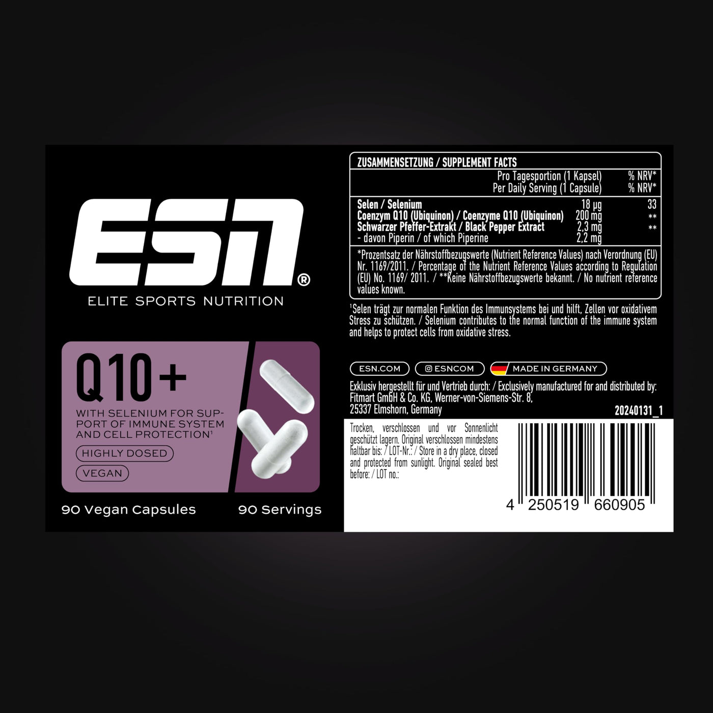 - MADE IN GERMANY: Our ESN Q10 Pro + Selenium is manufactured under the strictest quality standards in in-house German production