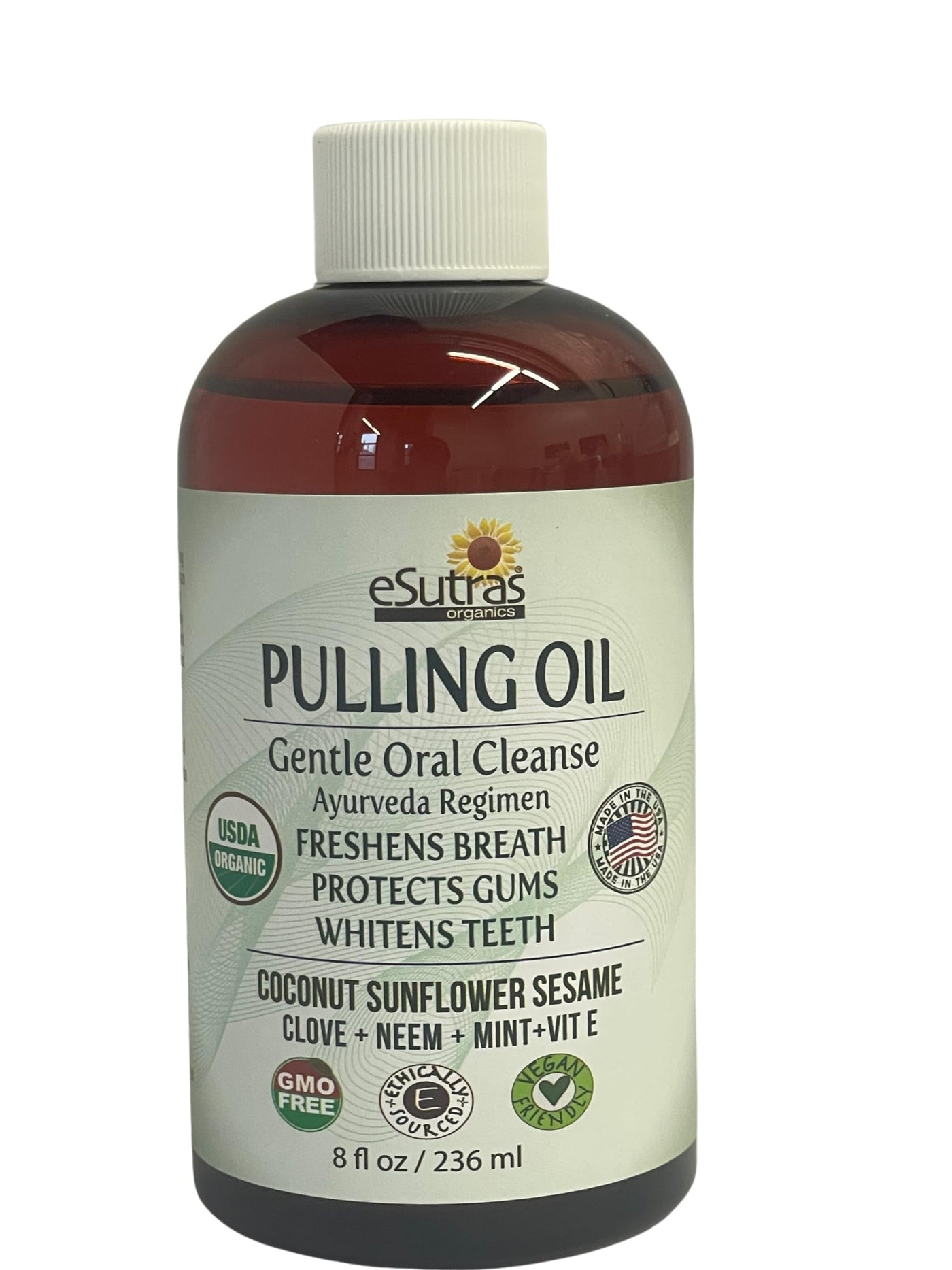 - Pulling oil from eSutras Organics is a Coconut based Ayurveda Pulling Mouthwash. It is a natural blend designed to enhance your smile and breath freshness. A powerful blend with coconut, essential mint, and a mix of nature's best, our mouthwash offers a unique cleansing routine. Oil Pulling Benefits Our coconut oil pulling mouthwash is crafted to provide a refreshing and thorough cleanse for your mouth, leaving a lasting sensation of purity and freshness.all-natural, non-toxic, and chemical free safe mouthwash.