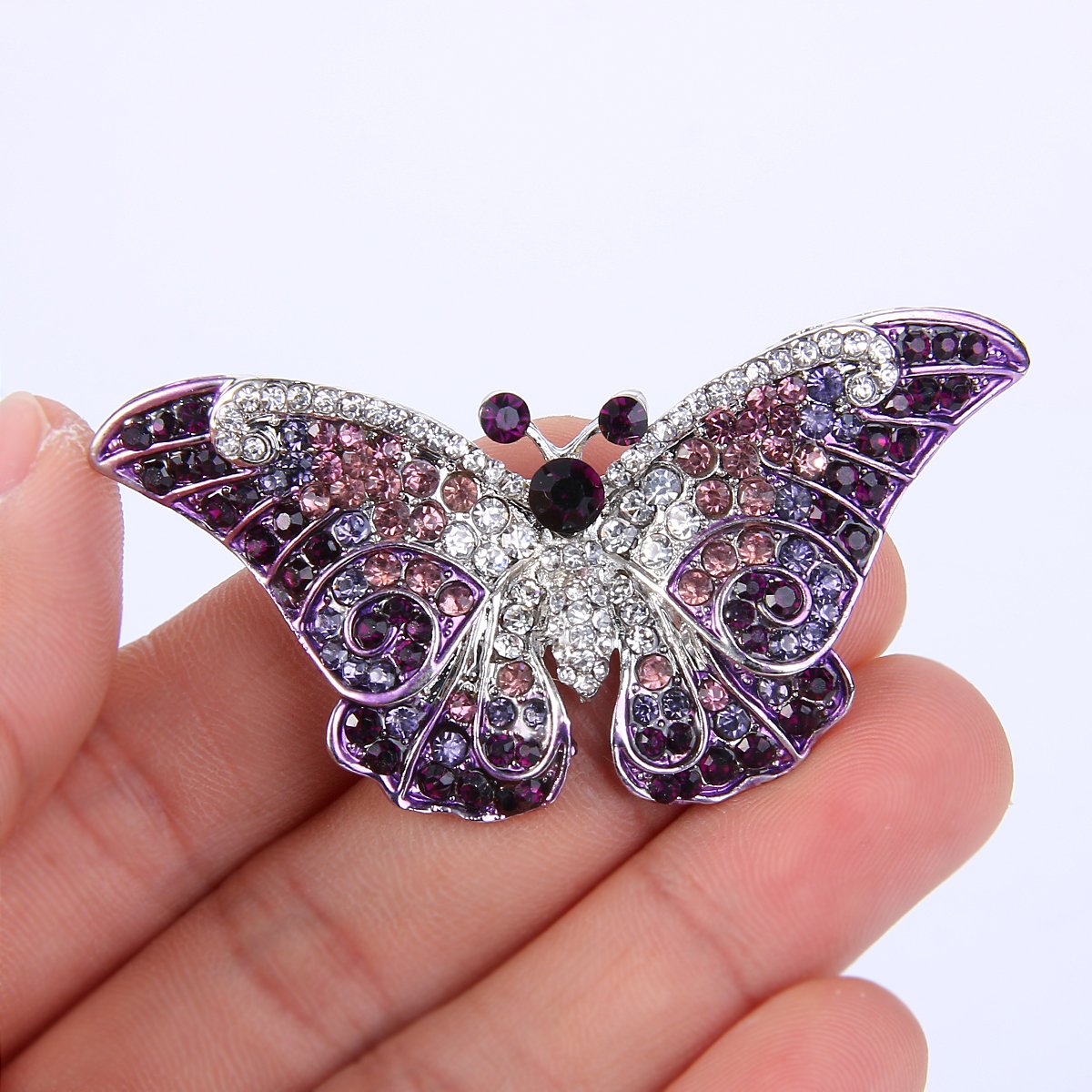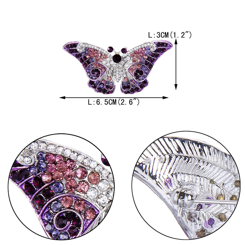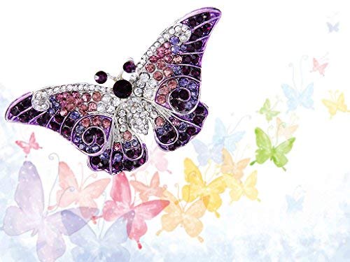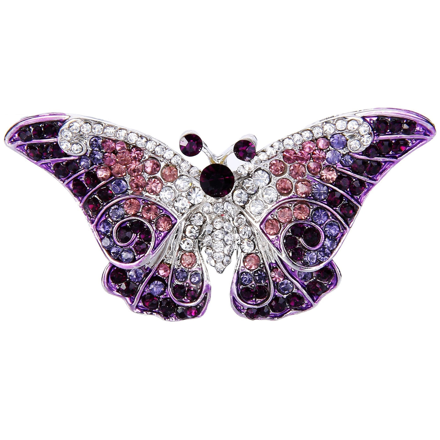 EVER FAITH Women's Austrian Crystal Cute Butterfly Insect Brooch Purple Silver-Tone
