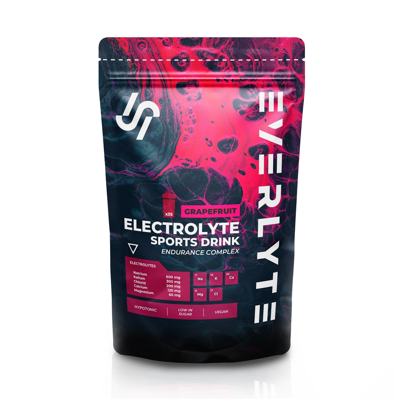 EVERLYTE Grapefruit Electrolyte Powder with Sodium, Potassium, Calcium, Magnesium & Chloride for Optimal Hydration / 35 Uses Low Calorie Sports Drink Powder / Natural, Vegan, Low Sugar Bag