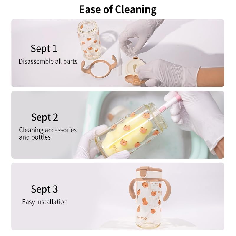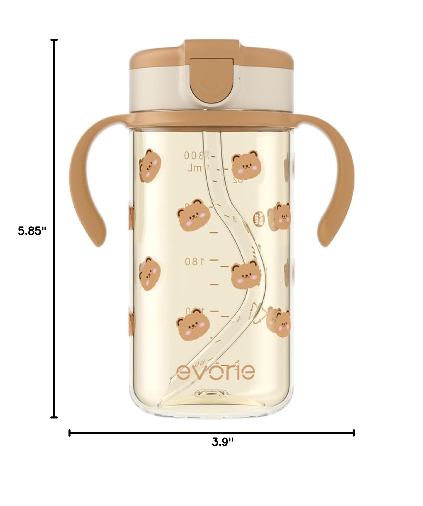 Evorie Tritan Spill Proof Toddler Straw Sippy Cup, 10 oz for Baby and Toddlers 1-3 Years Old, No Spill Straw Water Bottle with Removable Handles, Ideal for School, BPA-Free, Honey Bear Sweet Bear