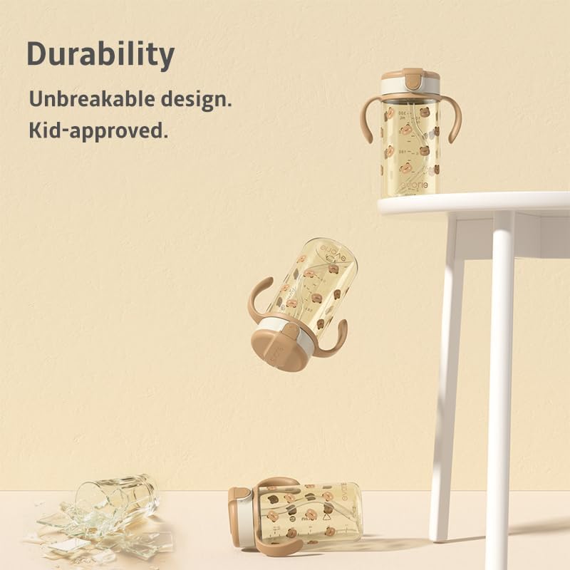 Evorie Tritan Spill Proof Toddler Straw Sippy Cup, 10 oz for Baby and Toddlers 1-3 Years Old, No Spill Straw Water Bottle with Removable Handles, Ideal for School, BPA-Free, Honey Bear