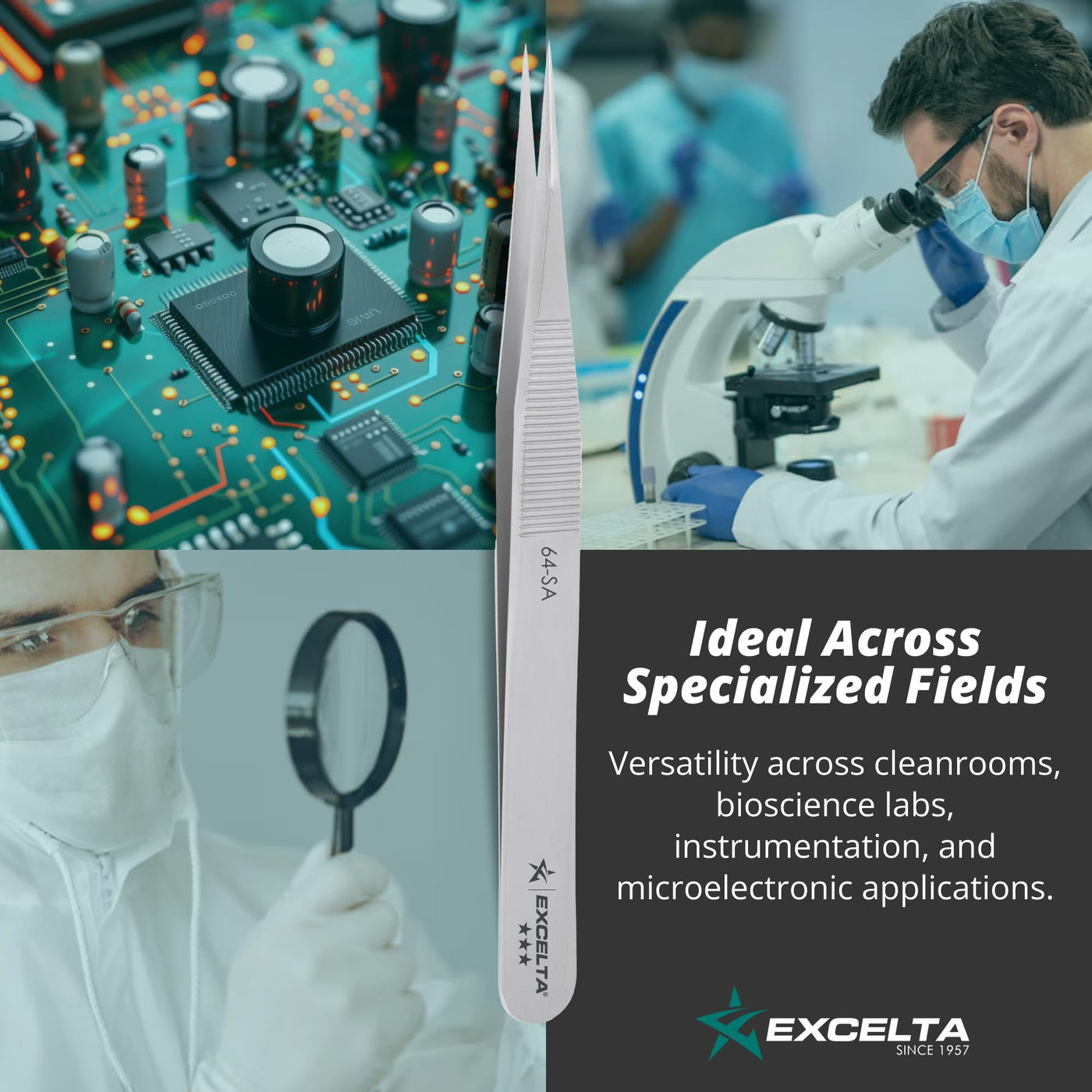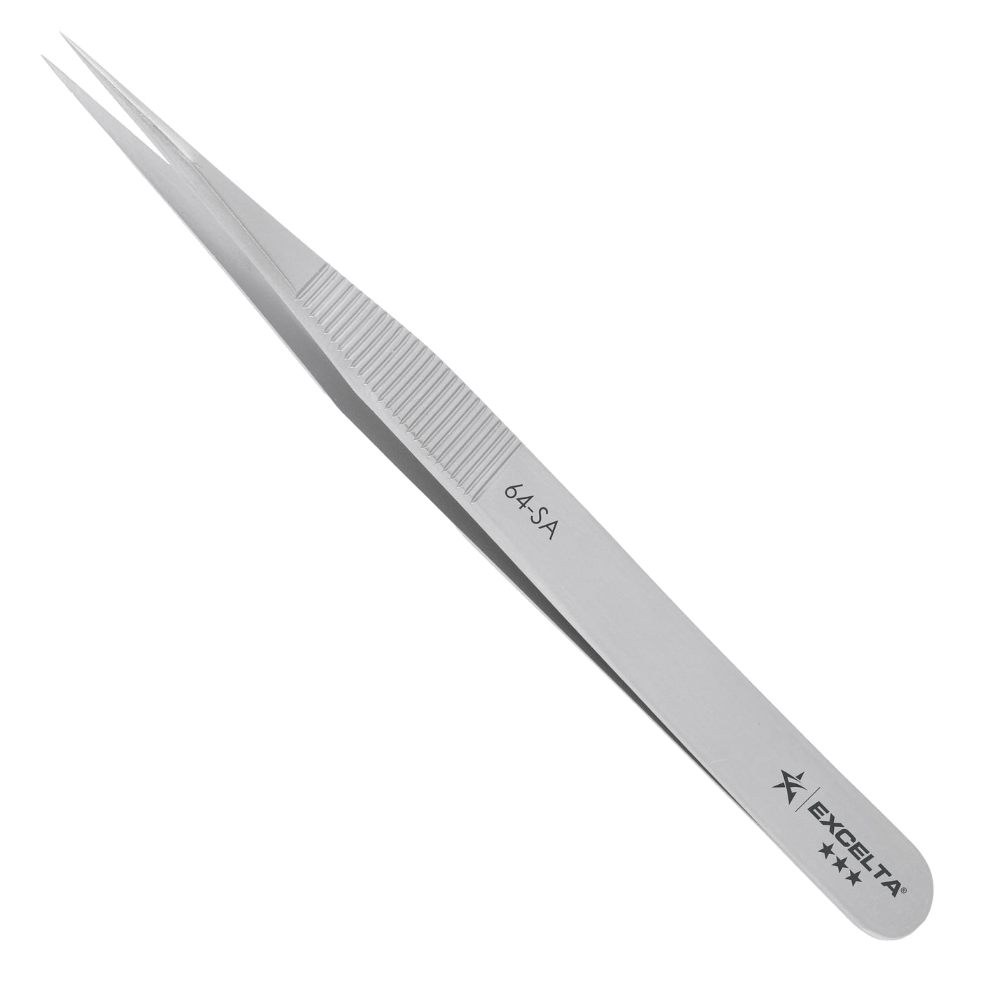 Excelta 64-SA Precision Tweezers, Straight Fine Tip, 4.75" Anti-Magnetic 316L Neverust Stainless Steel, Serrated Handle, ESD-Safe, Swiss-Made Tool for Electronics, Lab Use, Cleanroom & Forensics