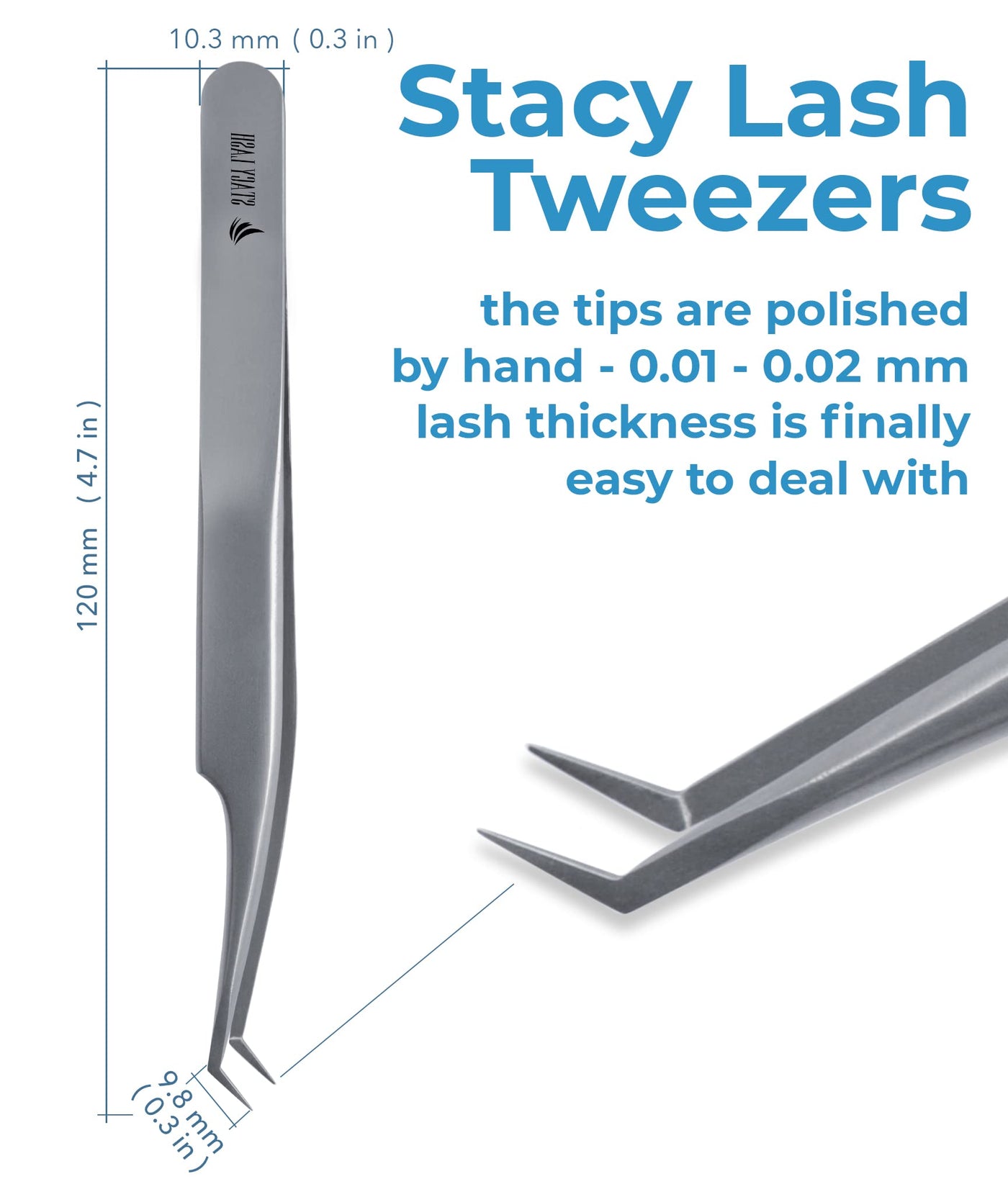 Extra Bonder & Stacy Lash STL-13 Curved L-Shaped Tweezers/Super Sealer/Prevents Adhesive Shock Polymerization/Precision Stainless Steel Tool/Angled Tips/Professional Supplies