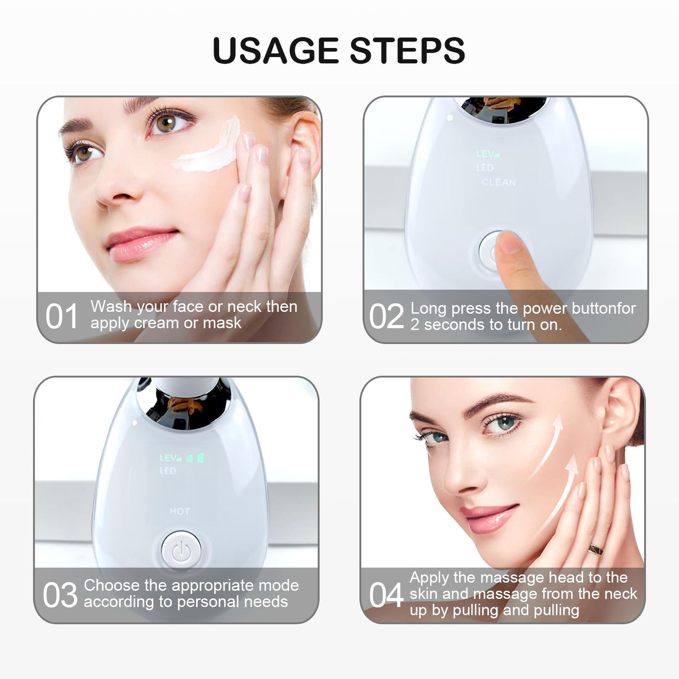 - This beauty device is meticulously designed to target neck wrinkles, reduce fine lines, anti-aging, alleviate puffiness, and firm the skin, providing an effective solution for a rejuvenated appearance.