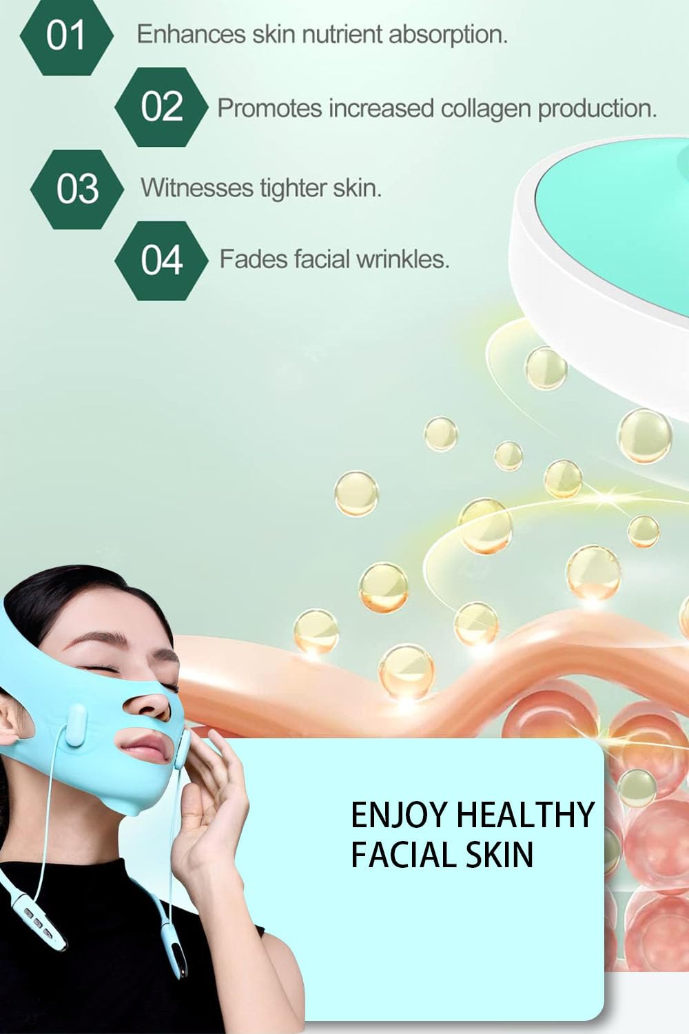 - Ergonomic Neckband DesignFeaturing innovative neckband control system with strategically positioned buttons that allow effortless adjustments while maintaining a sleek, minimalist aesthetic that complements any lifestyle.Easy to operate while wearing this jawline shaper.