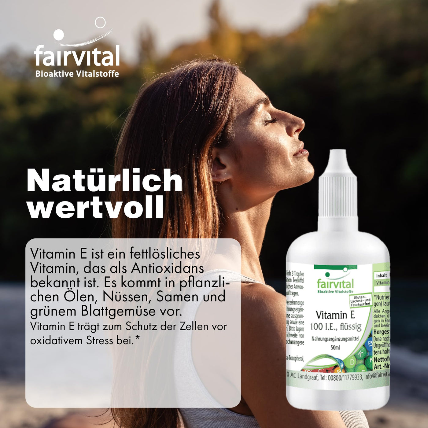Fairvital | Vitamin E oil 100 IU drops - 50ml - with over 1200 drops - VEGAN