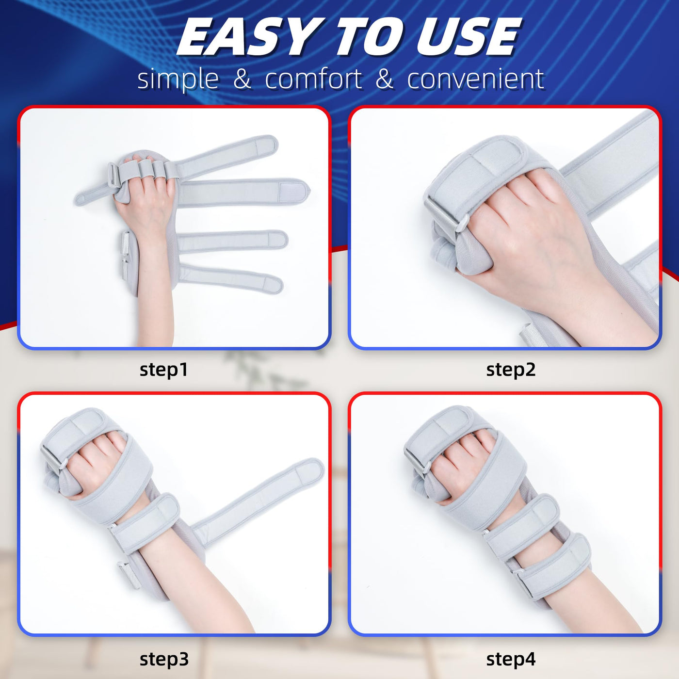 - Stable Support & All-Day ComfortThis resting hand splint offers balanced support with a combination of soft padding and a firm inner structure. Its ergonomic shape helps maintain the hand in a natural, relaxed position. Ideal for stroke recovery, metacarpal fractures, finger sprains, tendonitis, carpal tunnel syndrome, post-surgery rehabilitation, and other wrist or hand conditions.