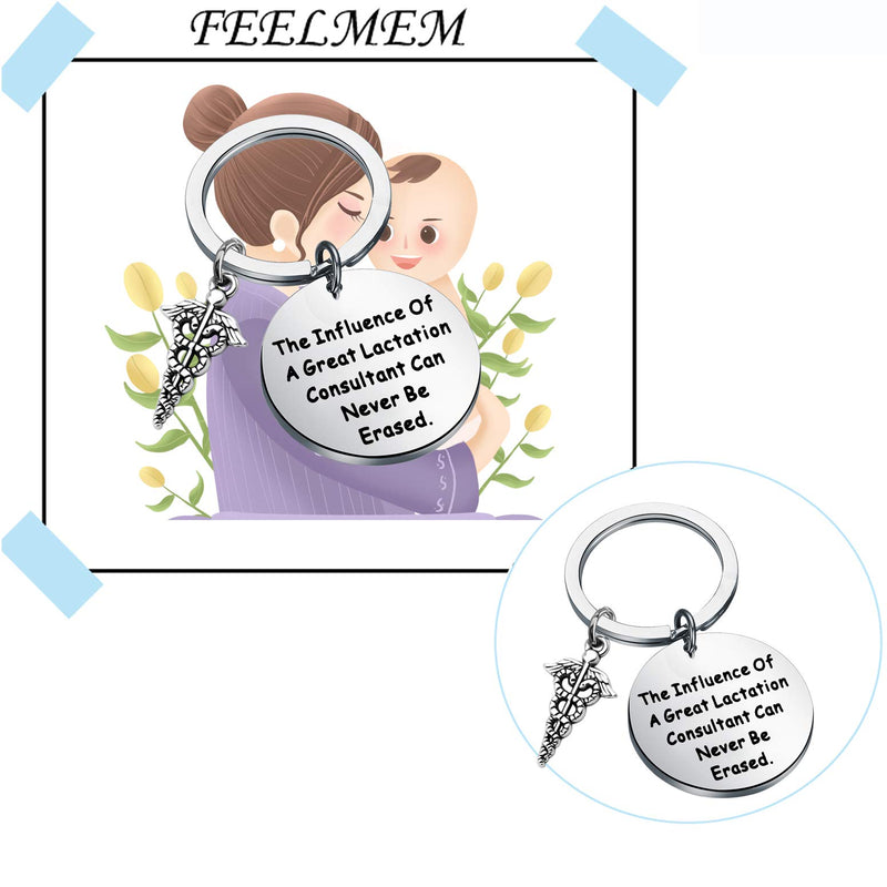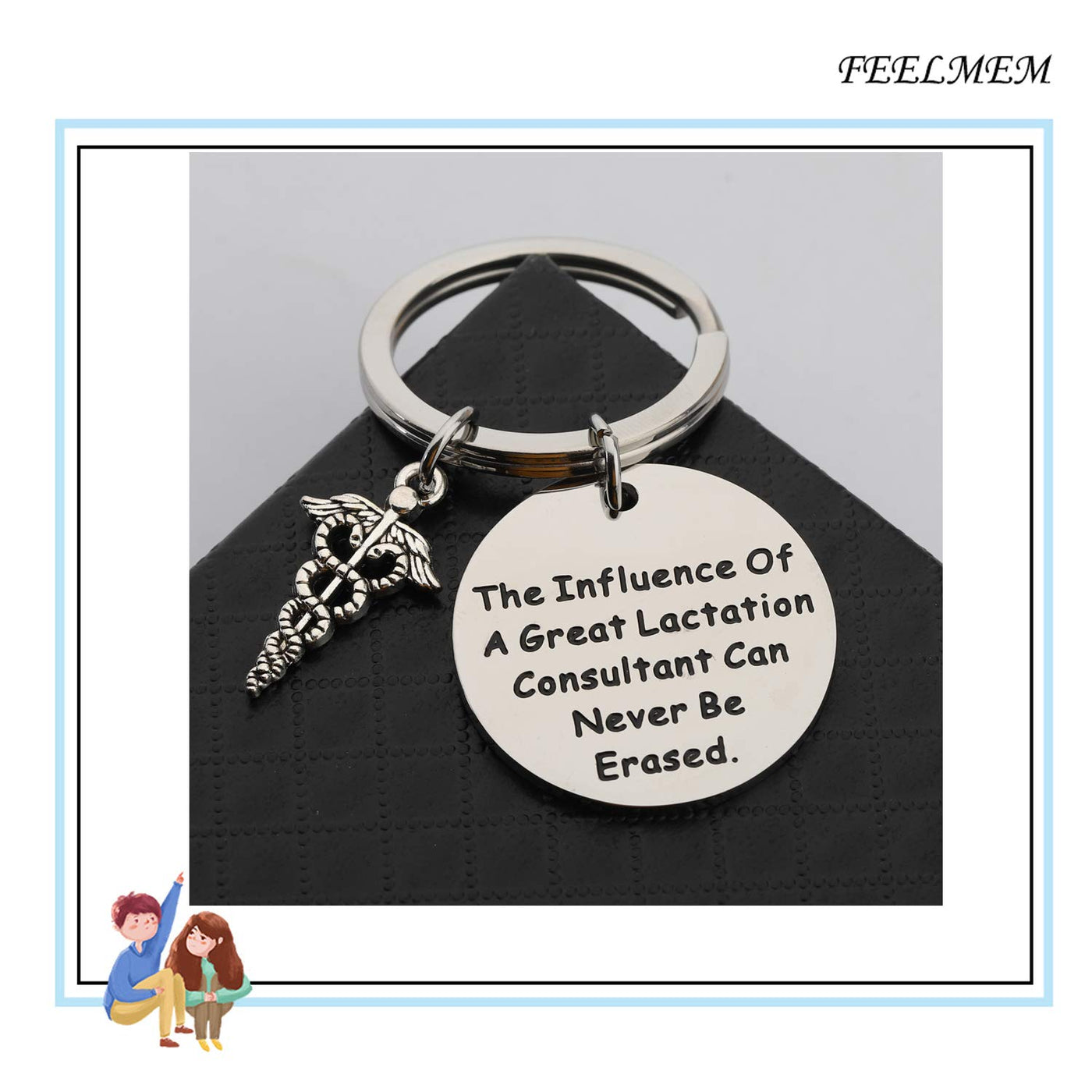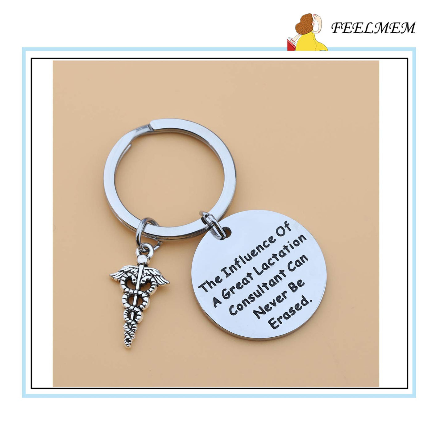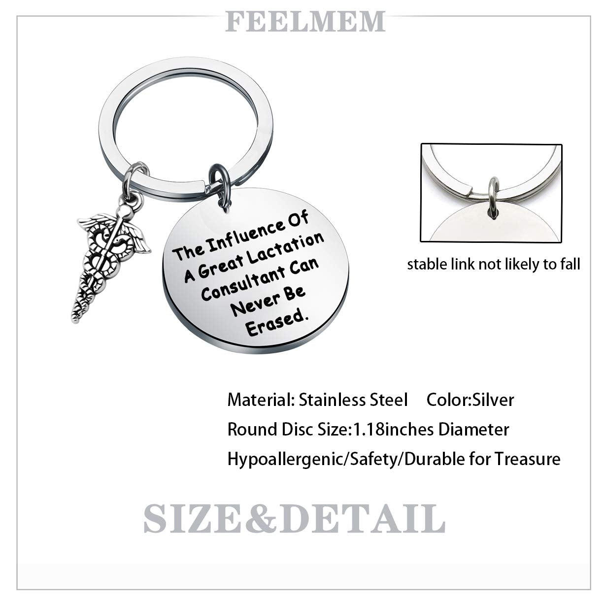 FEELMEM Lactation Consultant Gift IBCLC Gifts The Influence of a Great Lactation Consultant Can Never Be Erased Keychain Breastfeeding Gift Lactation Nurse Consultant Gift silver