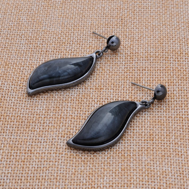 - This stunning statement leaf necklace is made from light weight nickel free alloy, is black gold plated and incorporates beautiful shimmery enamels in, copper and bronze. The necklace set also features beautiful high quality crystals and shimmery resin. This piece is only sold as a set with the stud earrings which are approx 1.3 in long.