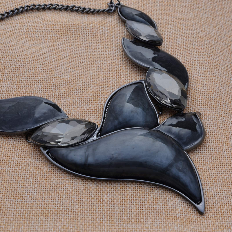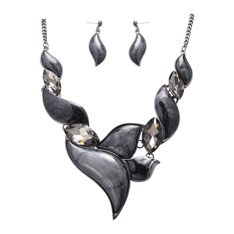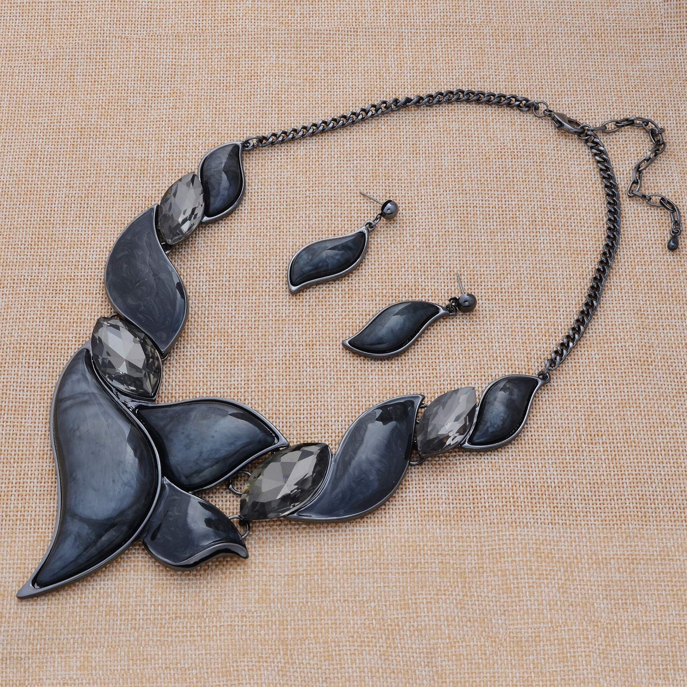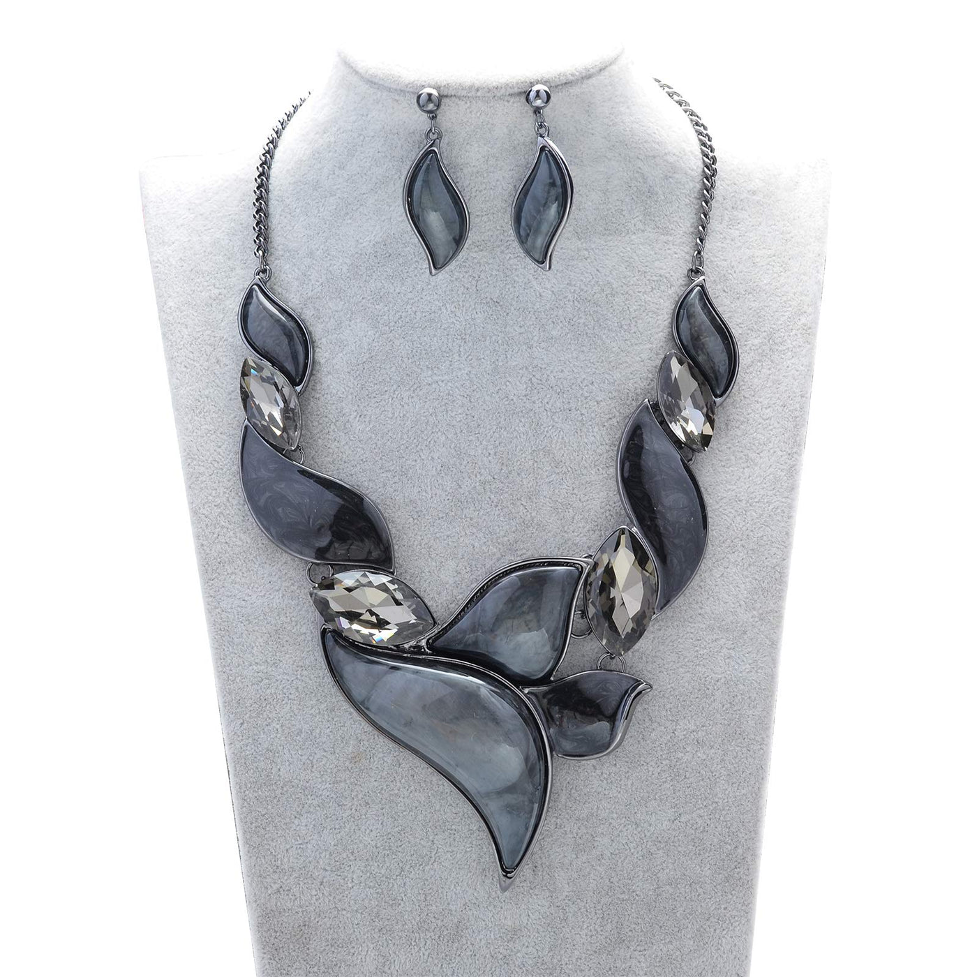 Fenni Retro Women's Crystal Floral Petal Leaf Chunky Statement Necklace and Earrings Set Party Jewelry Grey