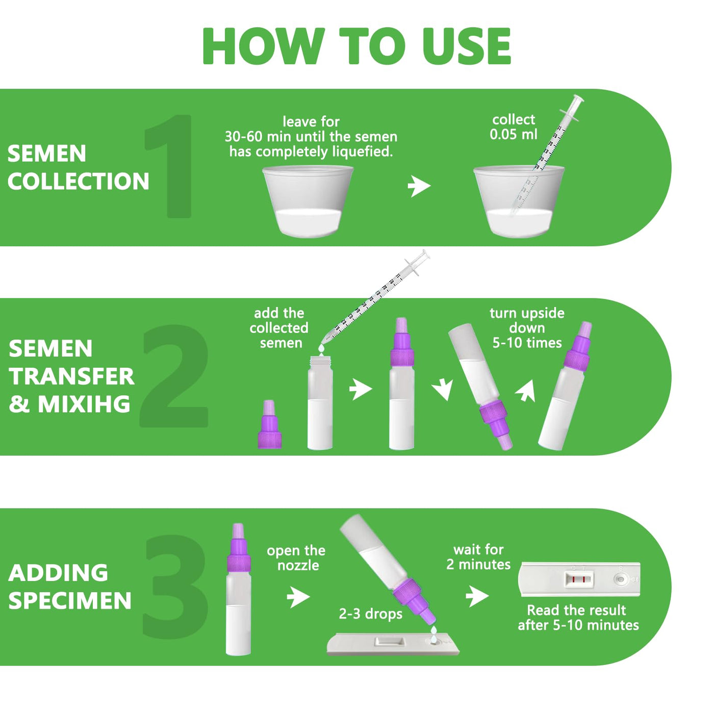 - AccuracyThe home semen testing kit uses lateral flow immunoassay technology and can indicate normal or low sperm count in men. Clinical trials have shown an accuracy rate of over 98%.