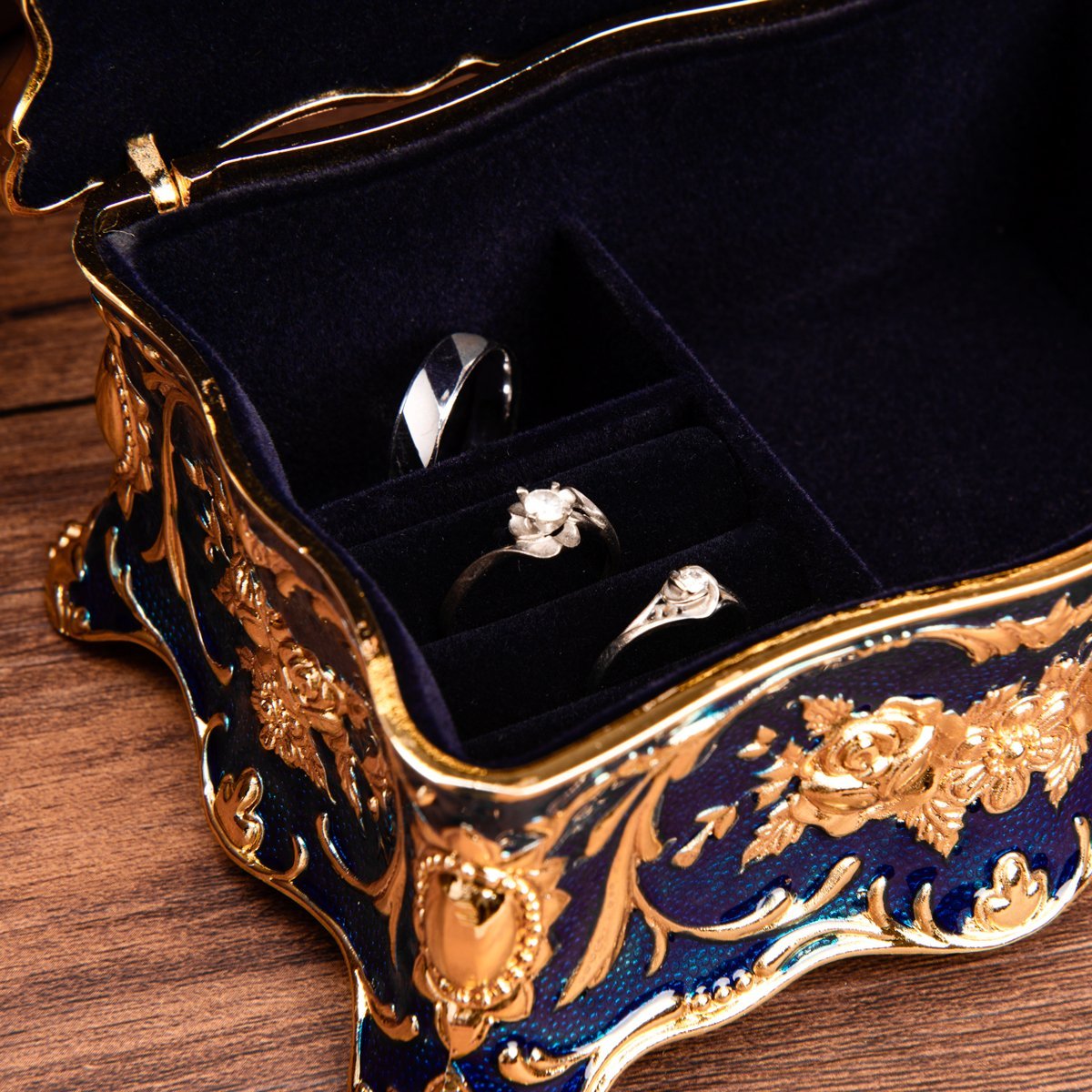 Feyarl Vintage Trinket Box Jewelry Box Wedding Ring Box Keepsake Box Treasure Box Chest Ornate Antique Finish Engraved with Dividers (4.72 x 3.34 x 2.24inch) Blue