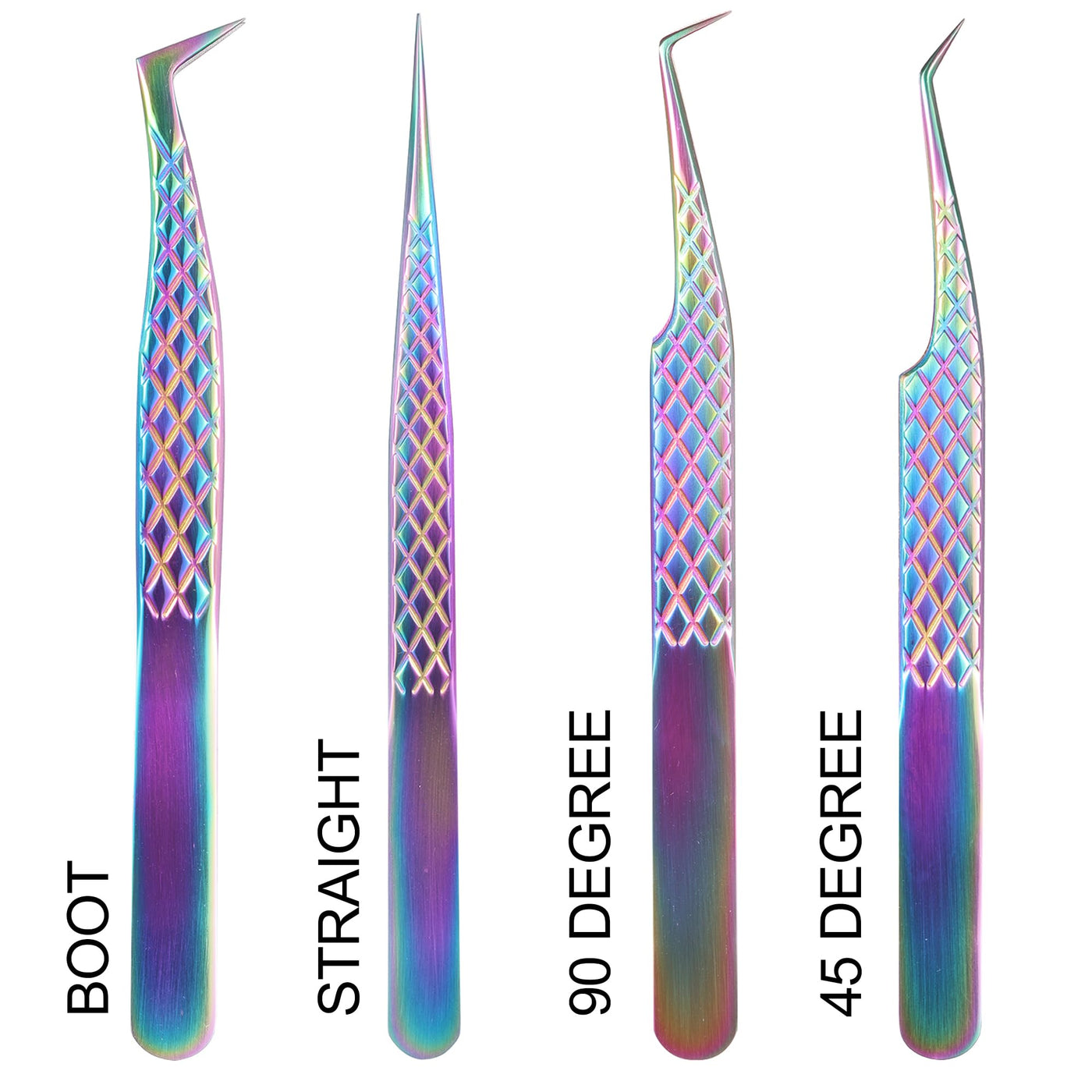 Fiber Tip Lash Tweezers For Eyelash Extension 4 Pcs Tweezers Professional Artist Tech Work Kit Tools,Best Volume Eyelash Lashes Extensions Precision Supplies Volume Boot 90 45 Degree(Multi) Multi