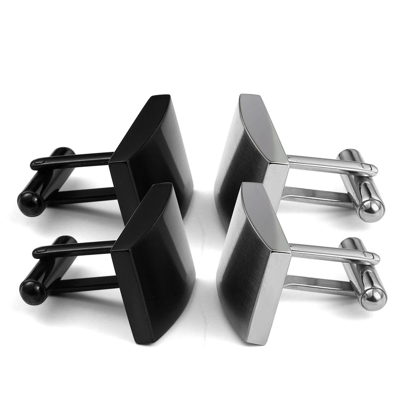 FIBO STEEL Stainless Steel Classic Cufflinks for Men Wedding Business 1 pair of black and 1 pair of white