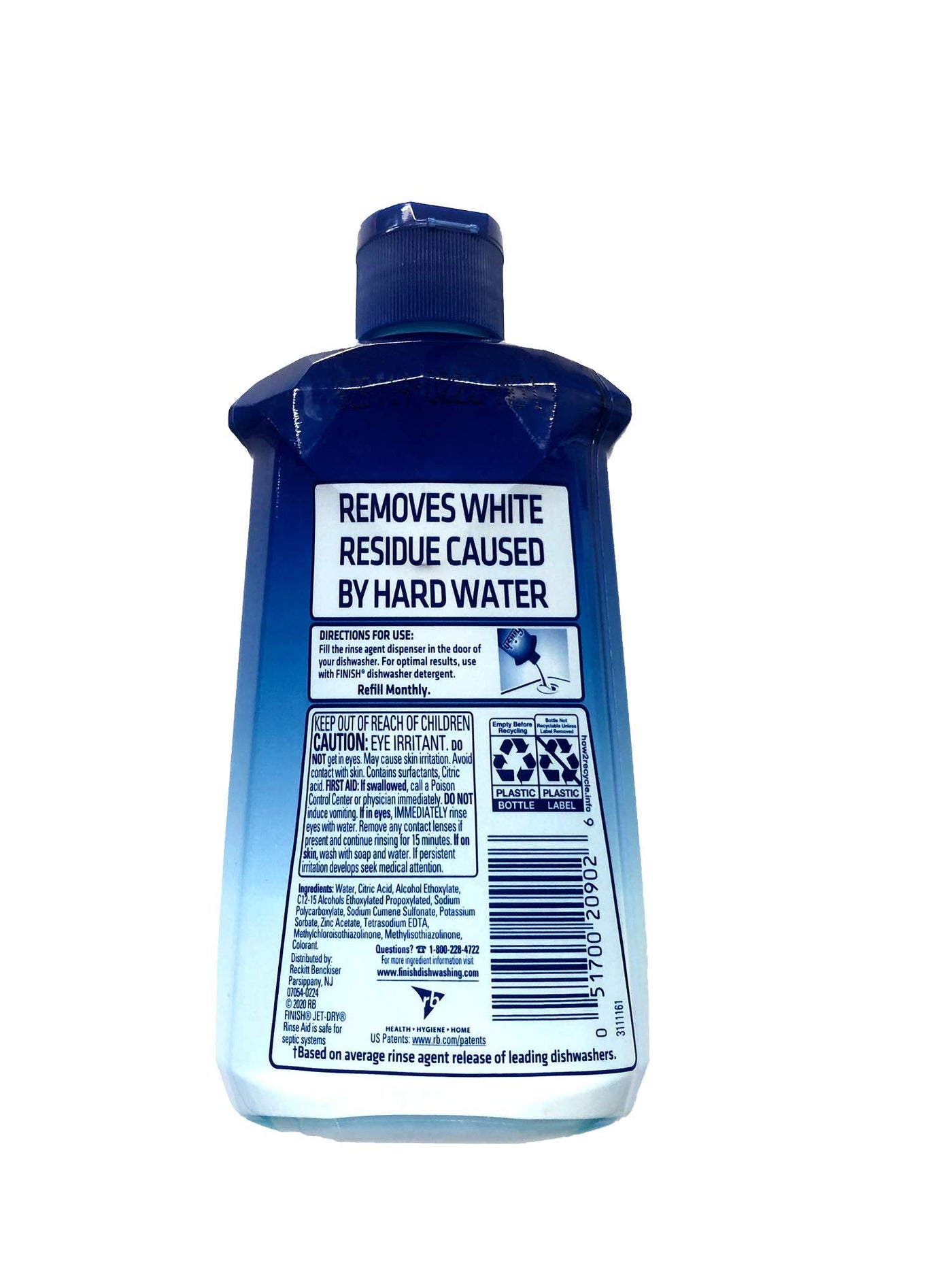 Hard water stain removal. New. 80 washes (Based on average rinse agent release of leading dishwashers). Removes white residue caused by hard water. Rinse Aid is safe for septic systems. Health. Hygiene. Home. how2recycle.info. Questions? Call . For more ingredient information visit