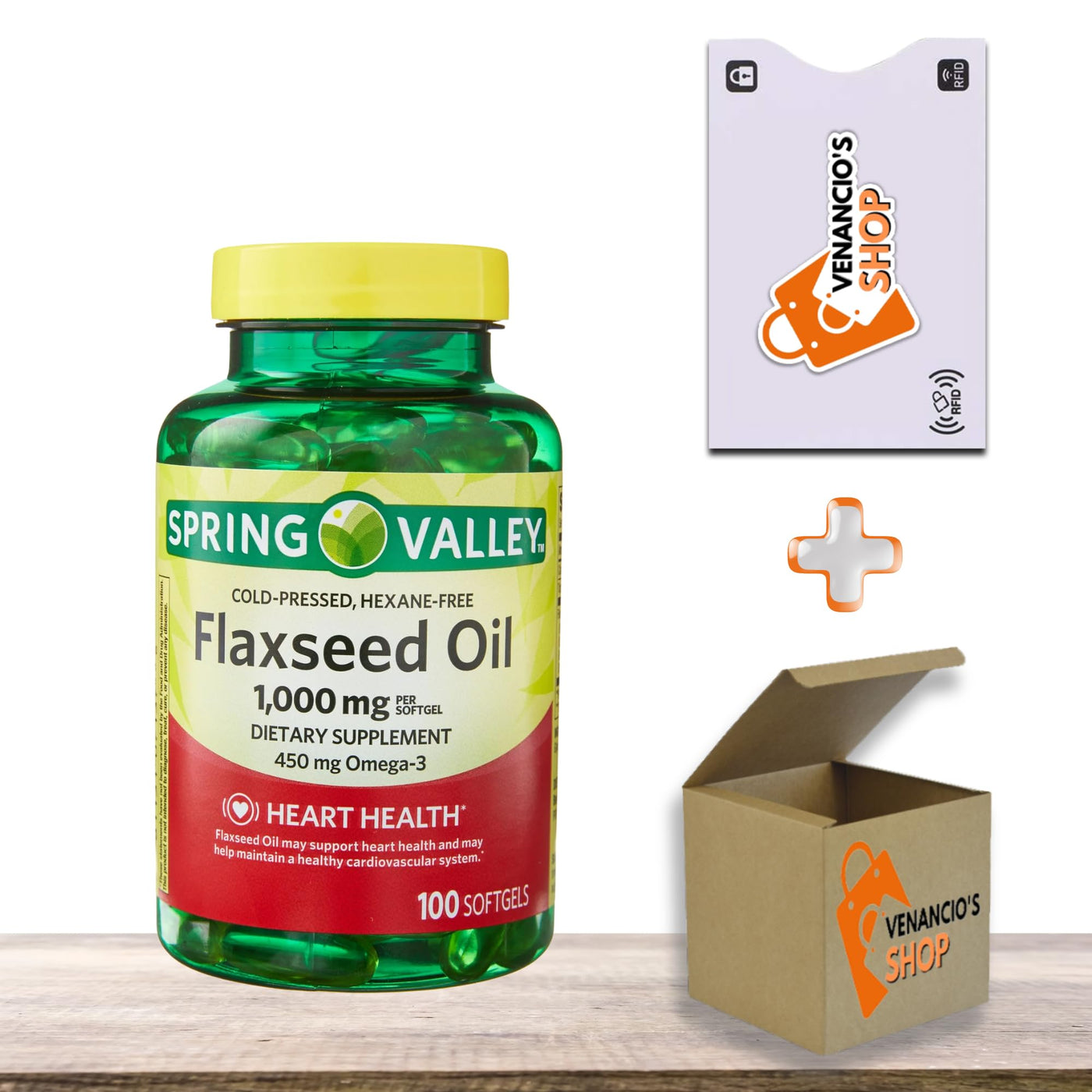 Flaxseed Oil 1000 mg Softgels • Plant-Based Omega 3-6-9 • Heart & Skin Support • 100 Count by Spring Valley + Vena’s Sticker (Pack of 1)