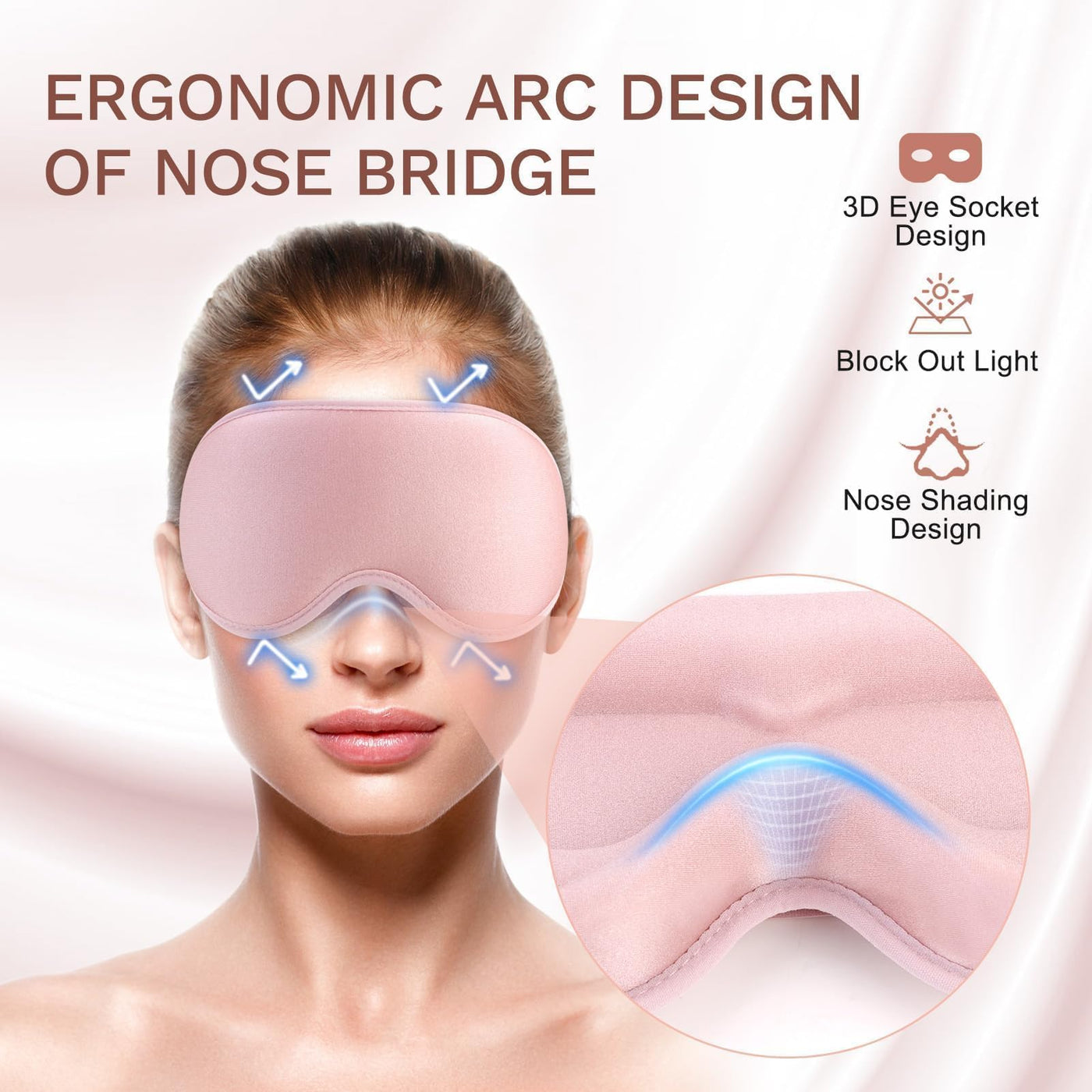 - NO Eyes PressureAdopting a 3D deepening groove design, the eye mask with deepened eye socket grooves adopts an ergonomic arc design, after hundreds of fine adjustments to obtain parameters for the depth, width, and spacing of the eye sockets, so achieve zero pressure and also allow your eyelashes to stretch.