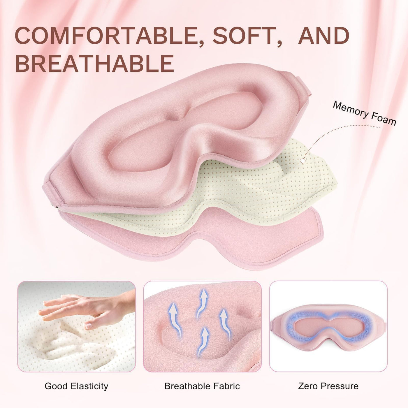 FlyCoco 99% Fully Block Out Light Eye Sleep Mask, 3D Deep Contoured Eyes Cover Zero Pressure, Long Lash Extension Eyes Mask with Adjustable Straps for Sleeping Travel Home Nap Rest Women Men (Pink)