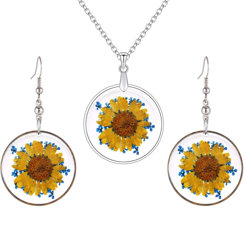 - The jewelry sets are handmade, and the image may show a slight difference to the actual flowers in color and shape. Wear nature around you with this amazing pressed flower earrings & necklace jewelry set. You will grab all the attention with them.