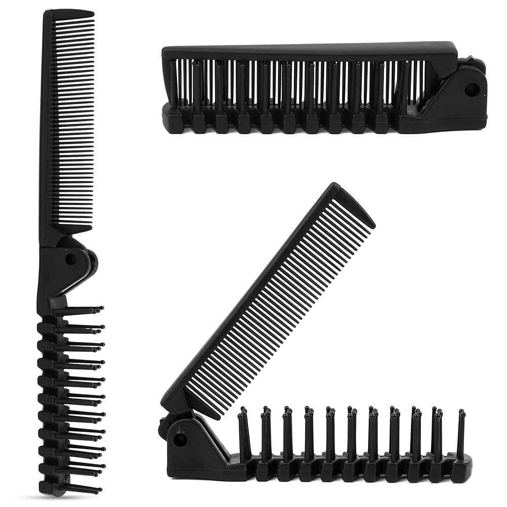 Folding Hair Brush and Comb, Plastic Portable Travel Hair Brush Pocket Hair Comb Double Headed Massage Hair Comb for Thick, Thin Hair (Black)