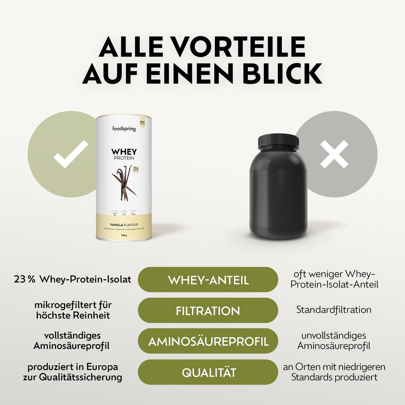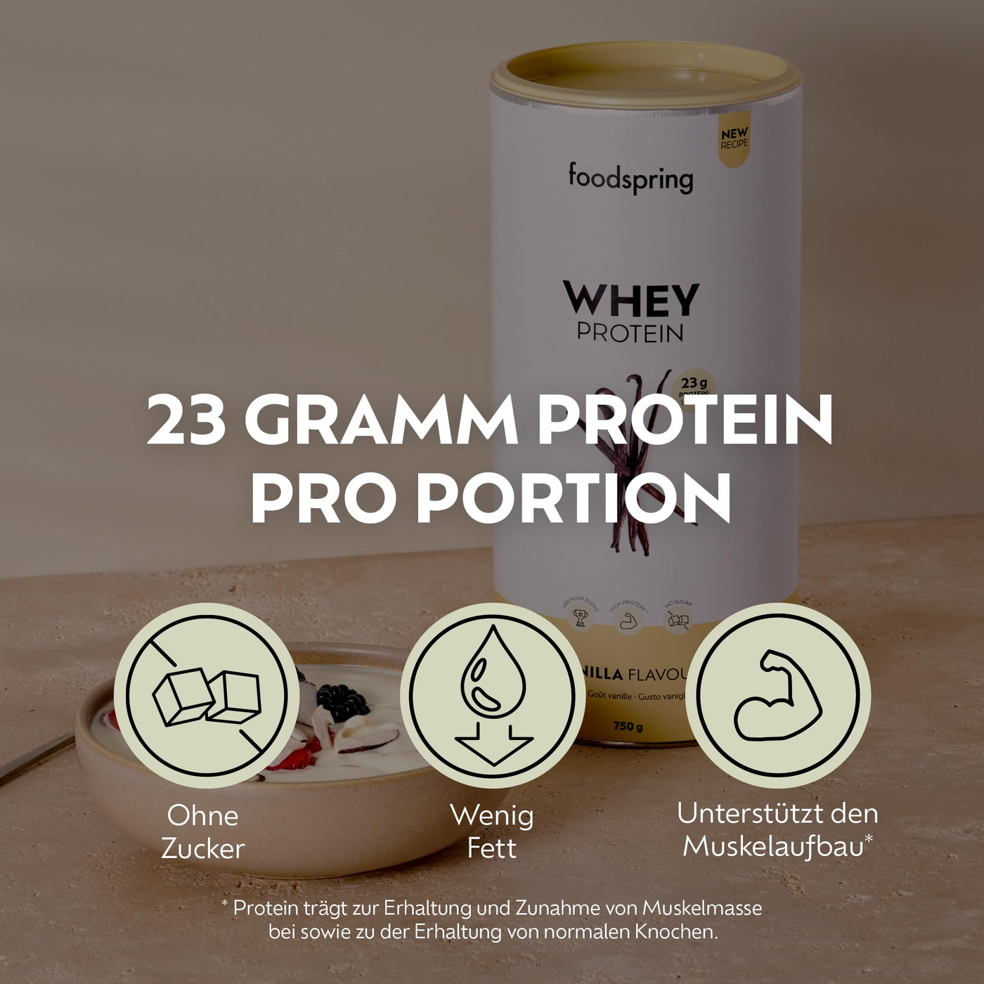 foodspring - Whey Protein Powder Vanilla - With 23g protein for building muscle, perfect solubility, ultra-filtered, rich in BCAAs & EAAs - full-bodied & delicious taste (750g)
