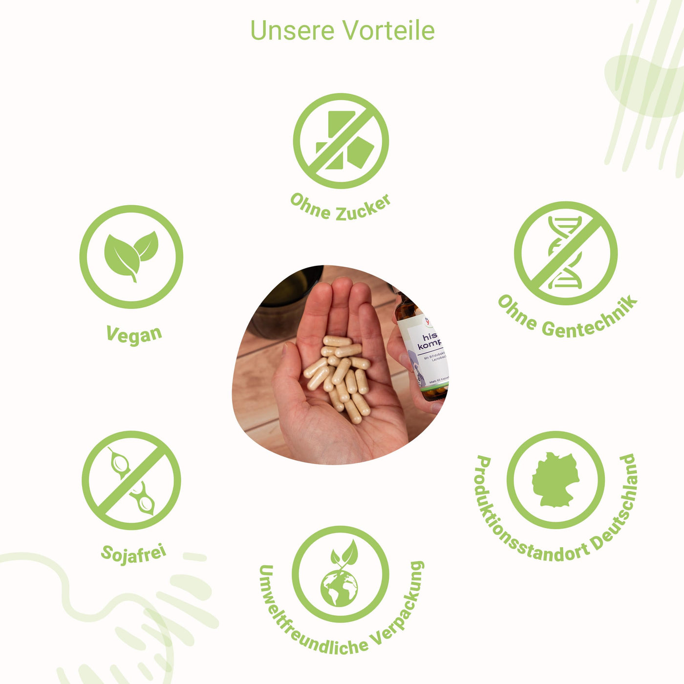 - 100% PURE & TESTED | hista complex is vegan, gluten-free, without genetic engineering, without fillers, colorings or flavor enhancers.