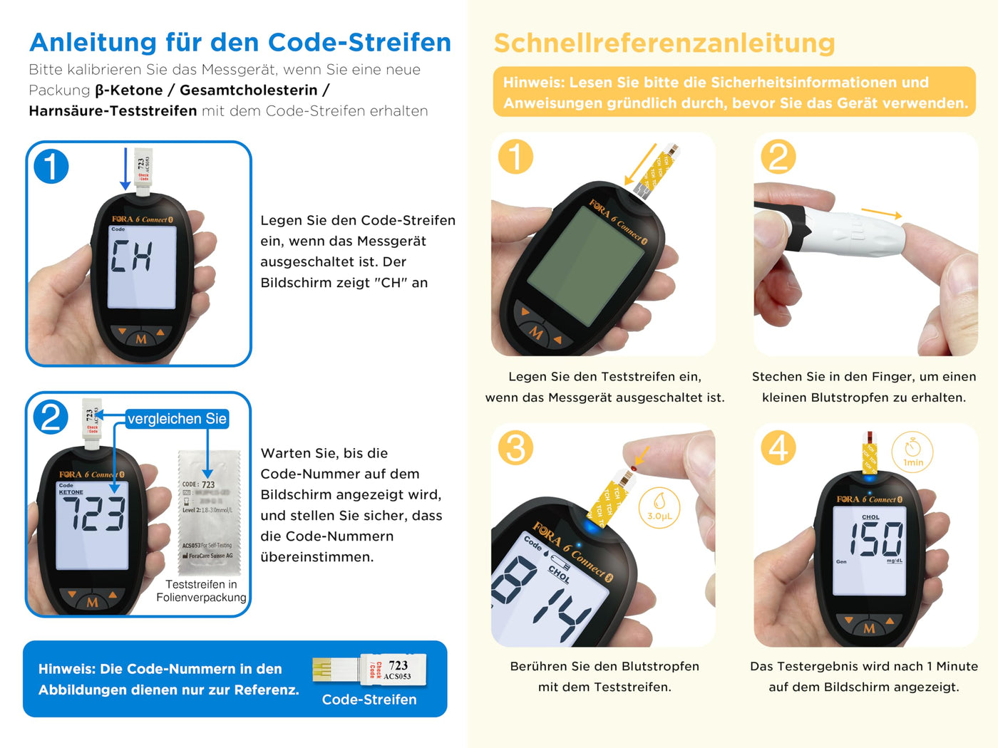 - Accurate total cholesterol readings in seconds: Our advanced FORA 6 Connect meter and total cholesterol test strips provide precise total cholesterol readings within seconds. Take the guesswork out of it - manage your health confidently with accurate results.